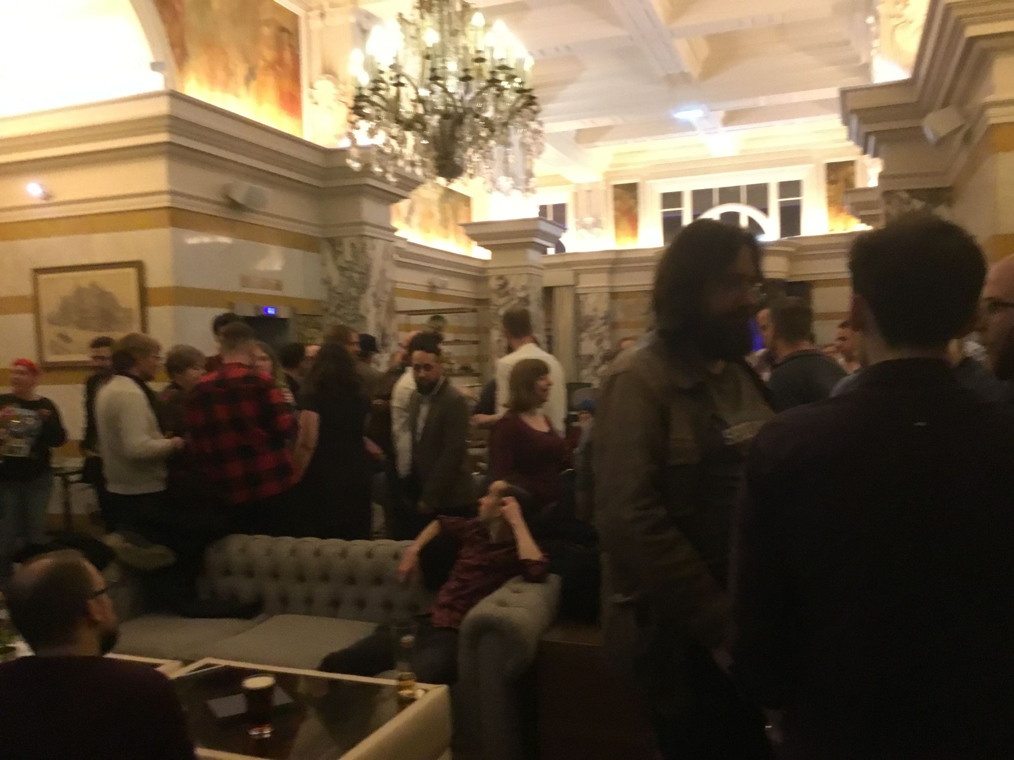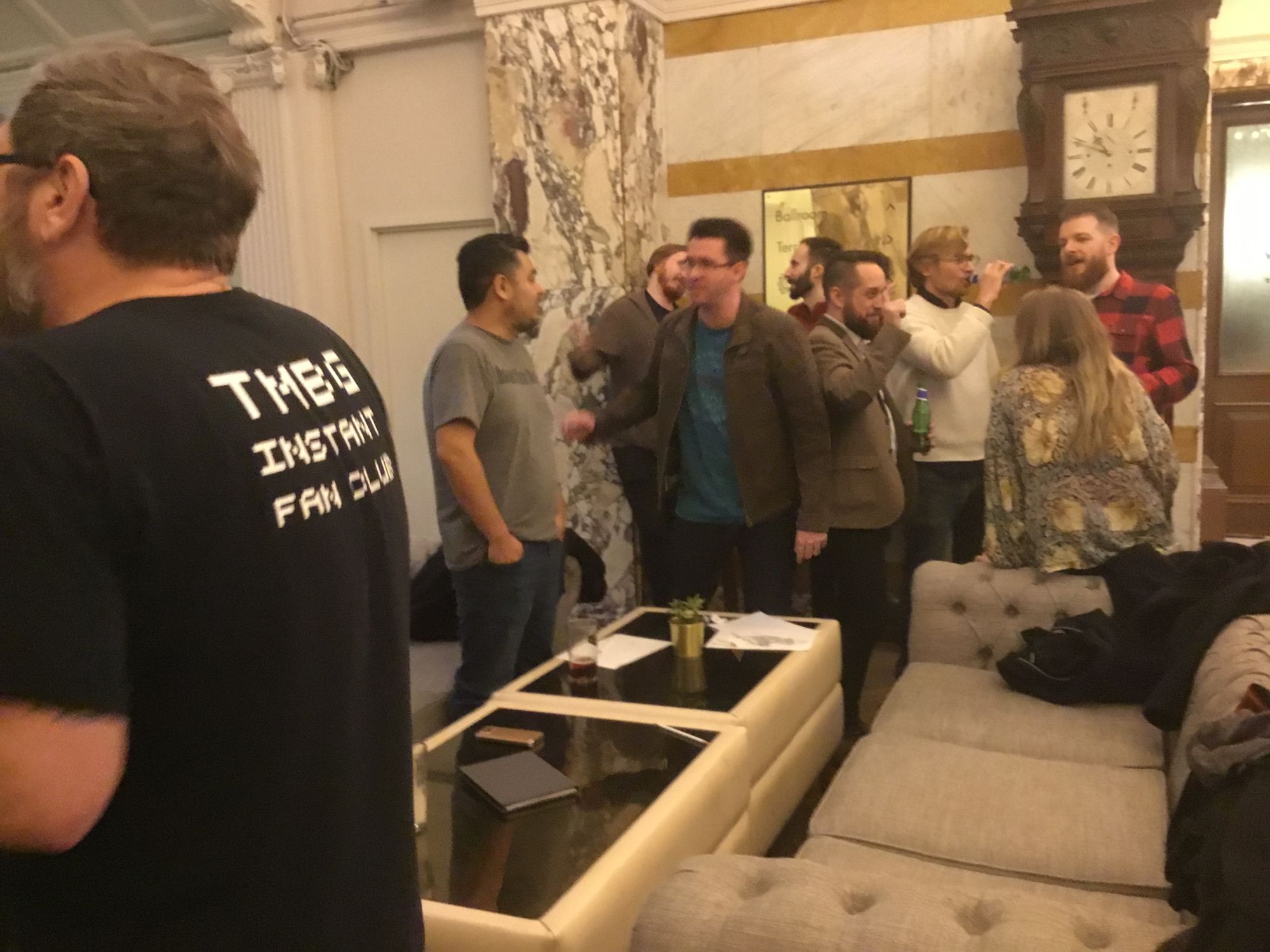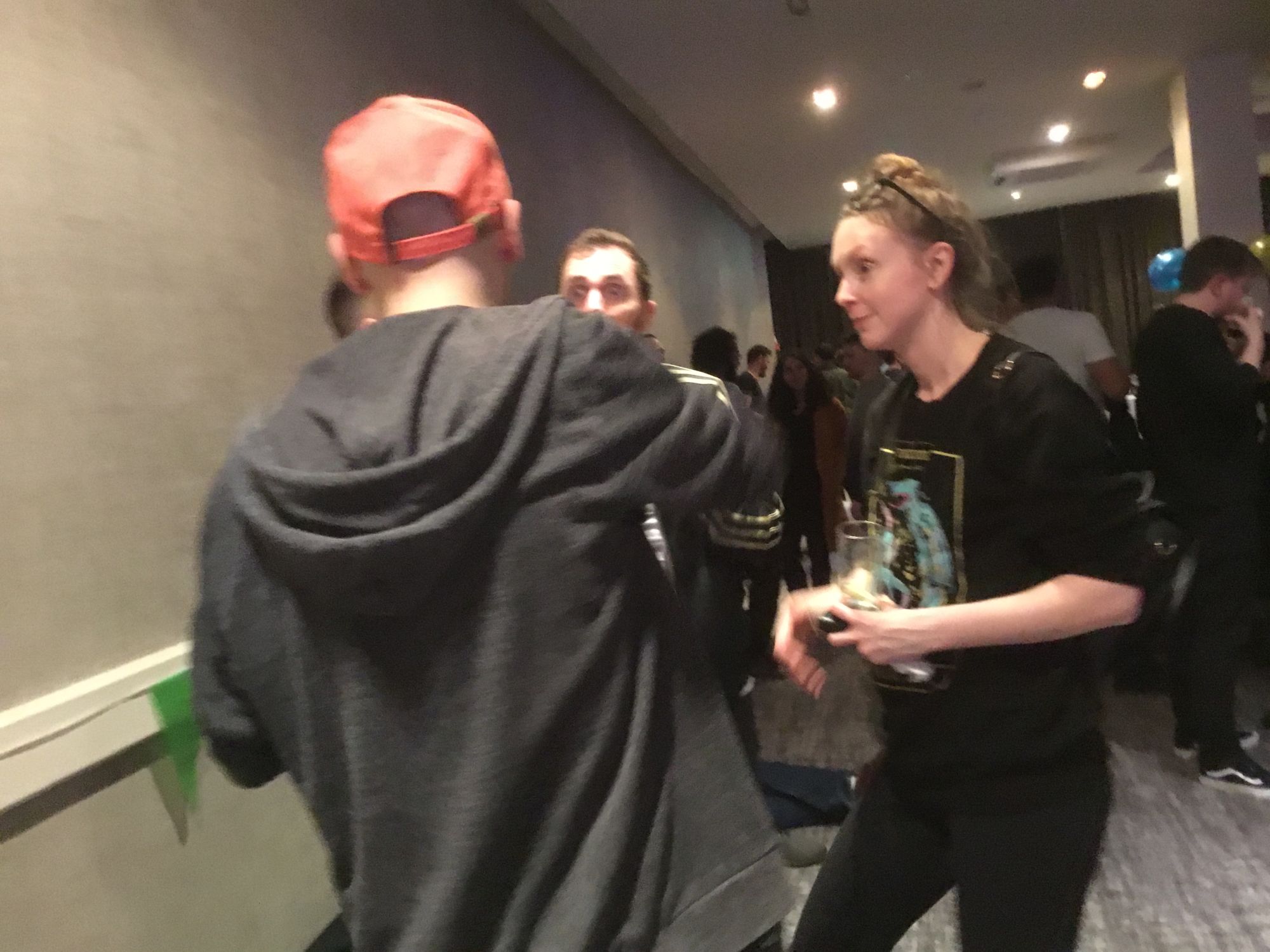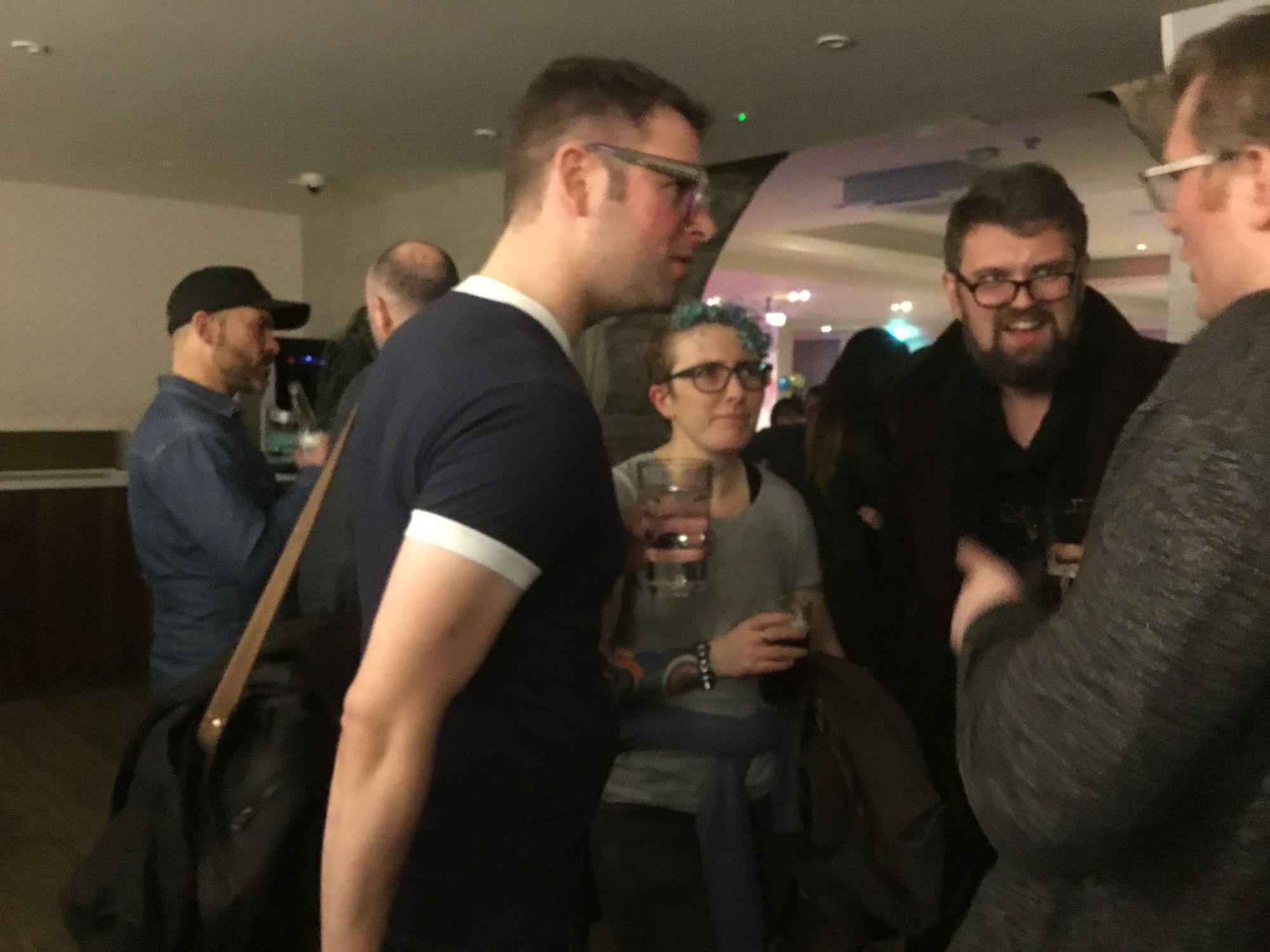 Oh, it turns out it does have need after all. Fair enough then, who can you spot? We begin with Leah and John Moore-Reppion, Henry dancing and Esad Ribic who has just finished demonstrating the superiority of his hand-size against his drinking compatriots…
