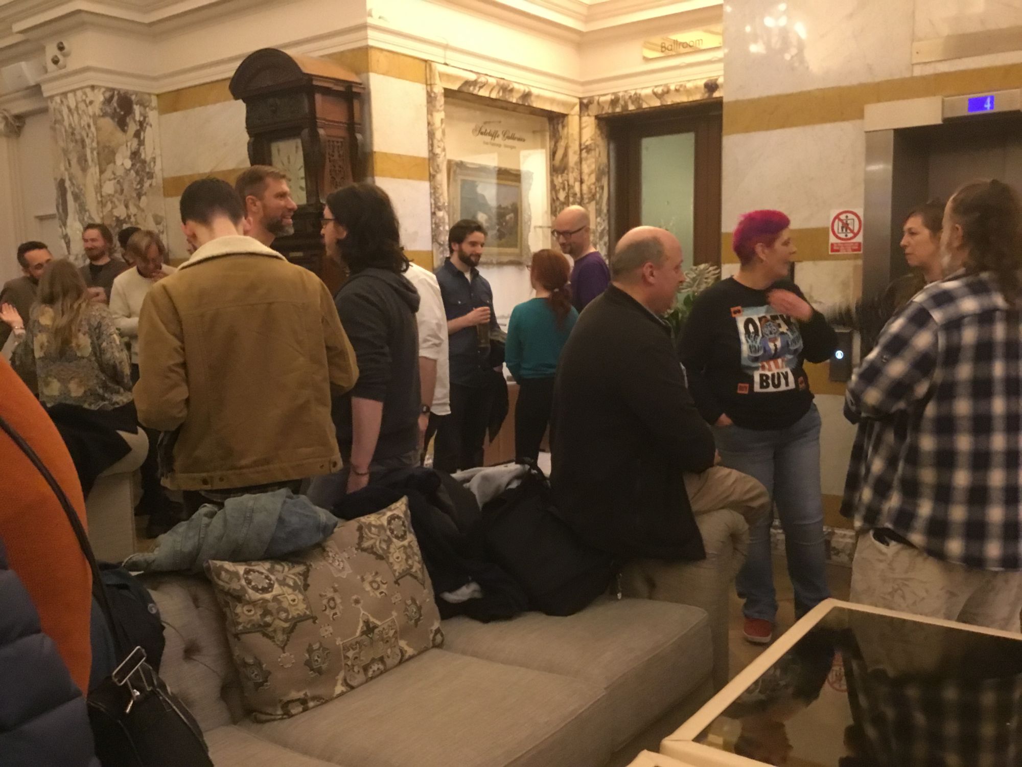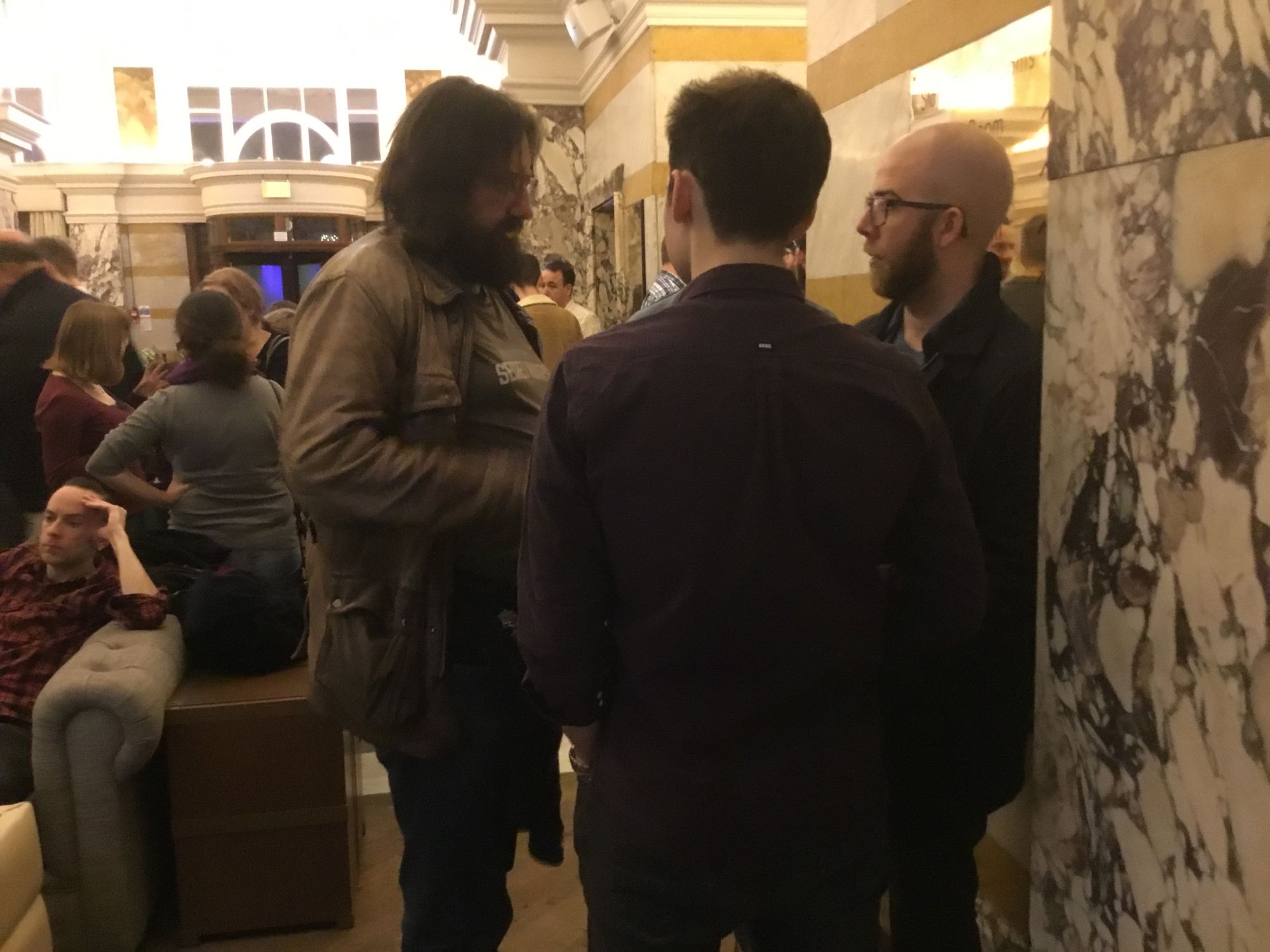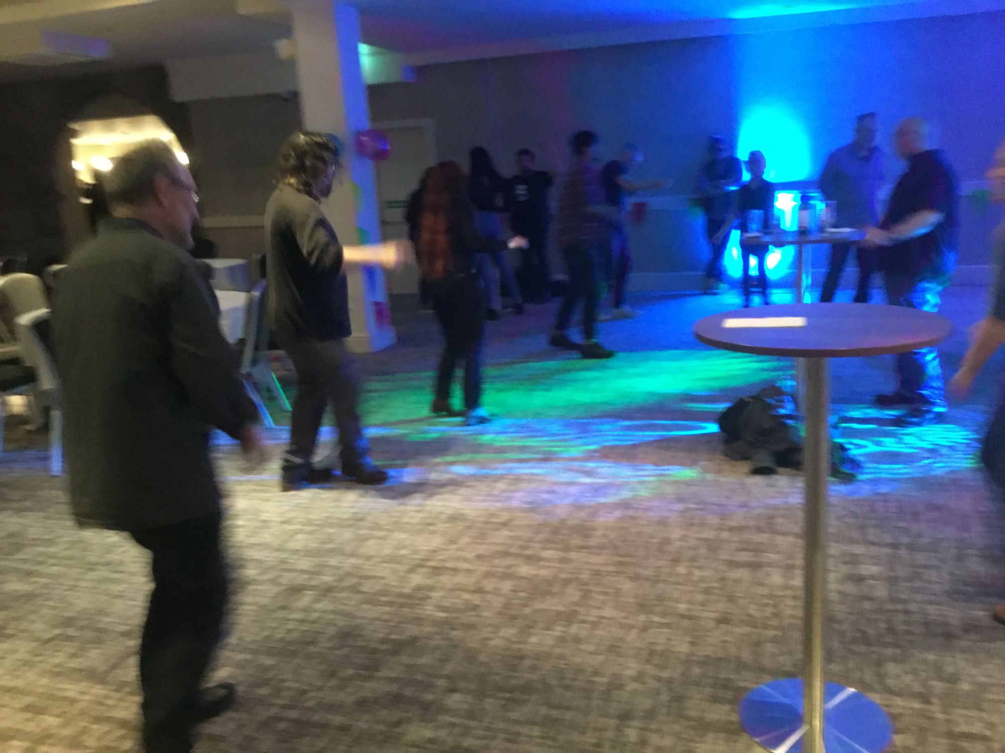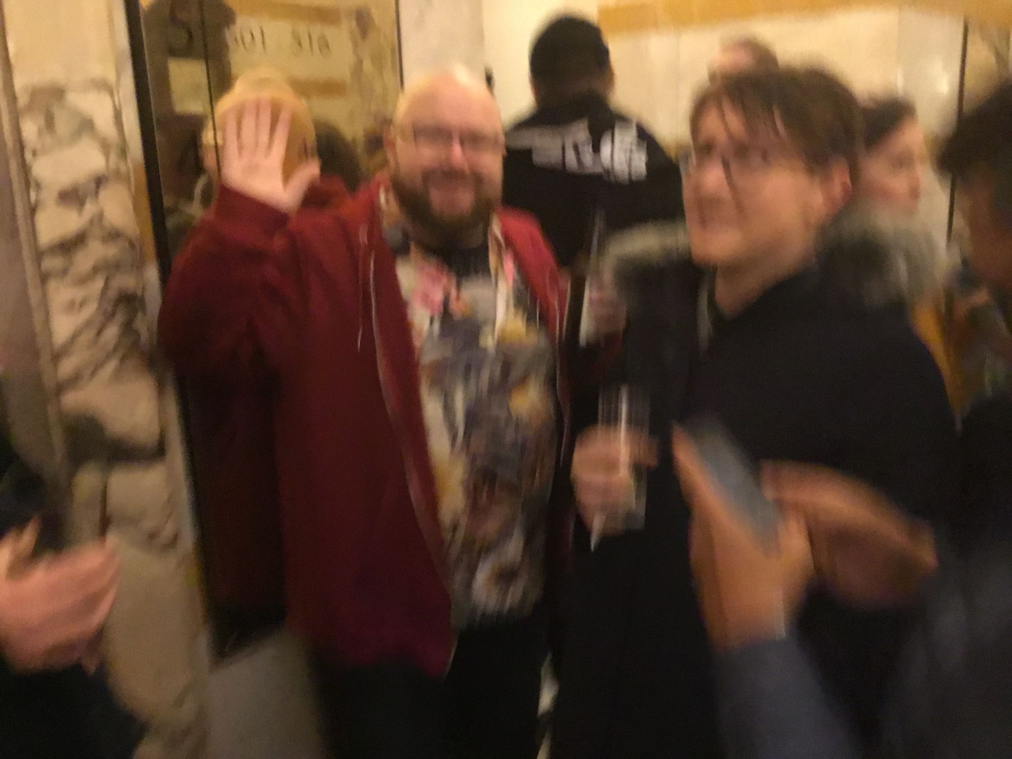 Oh, it turns out it does have need after all. Fair enough then, who can you spot? We begin with Leah and John Moore-Reppion, Henry dancing and Esad Ribic who has just finished demonstrating the superiority of his hand-size against his drinking compatriots…