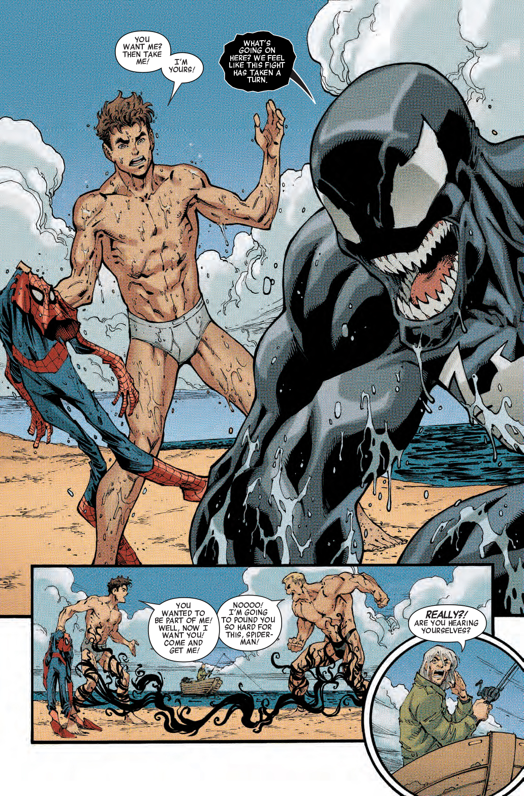 We're all hearing it, fisherman. And stay out of this, will you? Marvel needs to greenlight a Spider-Man/Venom erotic ongoing series immediately, since this is, unfortunately, all we get, at least in the preview. What a tease!