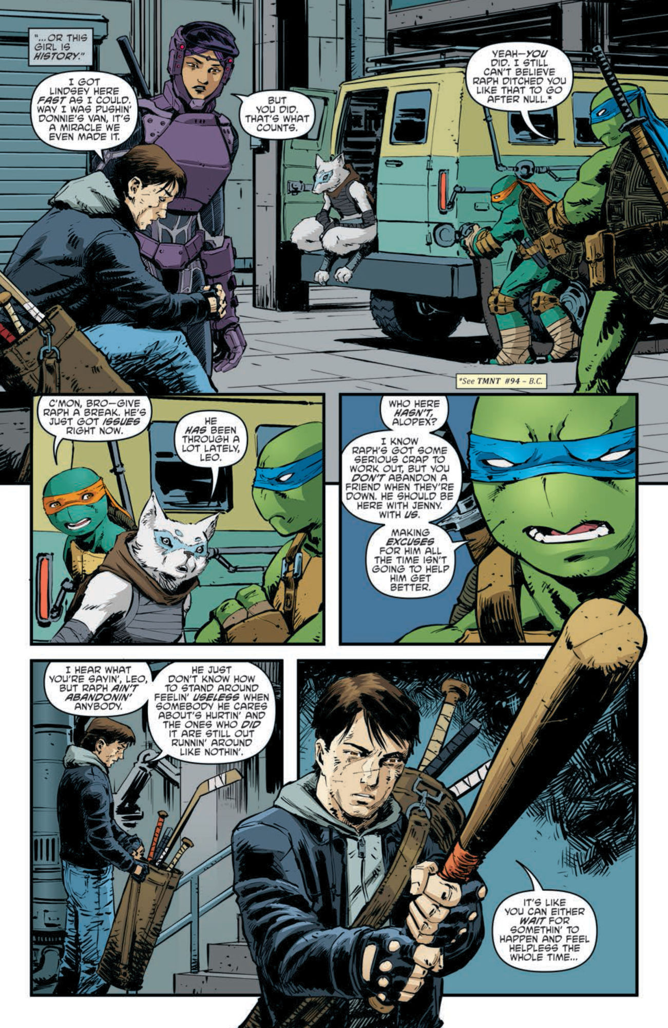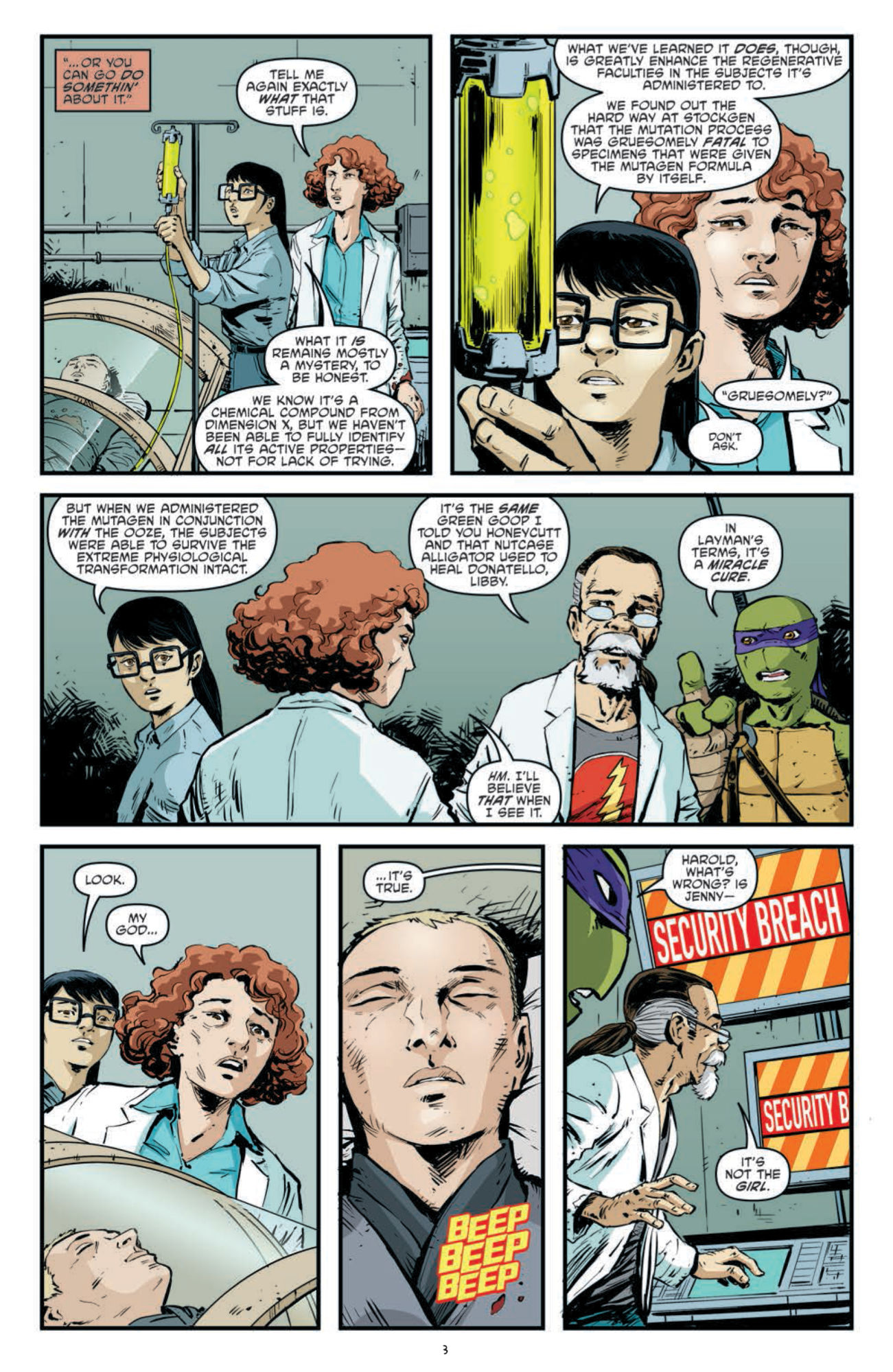 In the preview, Jennika's life hangs in the balance after she was stabbed in the gut as part of the war over control over the foot clan. But thanks to the lack of universal healthcare, instead of the hospital, Jennika is brought to a makeshift medical facility where scientists decide to try a dangerous experimental treatment.
