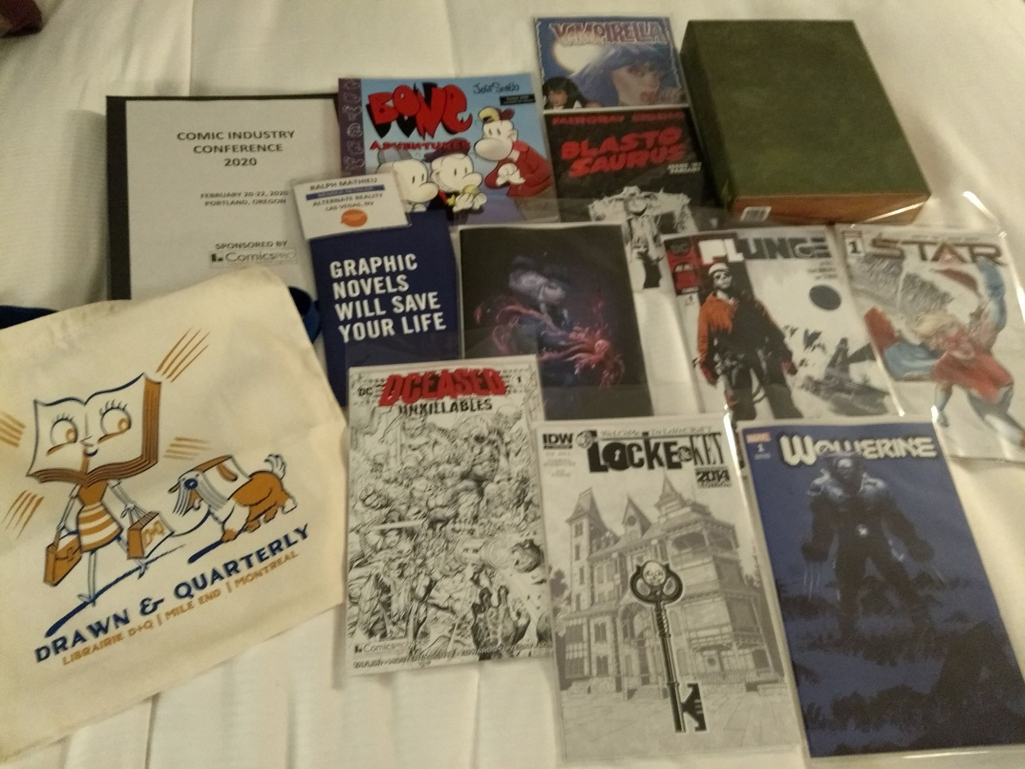 Ralph Mathieu of Alternate Reality Comics, Las Vegas is attending ComicsPRO in Portland, Oregon, the retailer advocacy group's annual summit. As we have detailed in depth, retailers attending the show can benefit from quantities of swag, as well as knowledge, insight and industry networking opportunities. But the swag does figure large. Here's what Ralph picked up on his first day at the show.