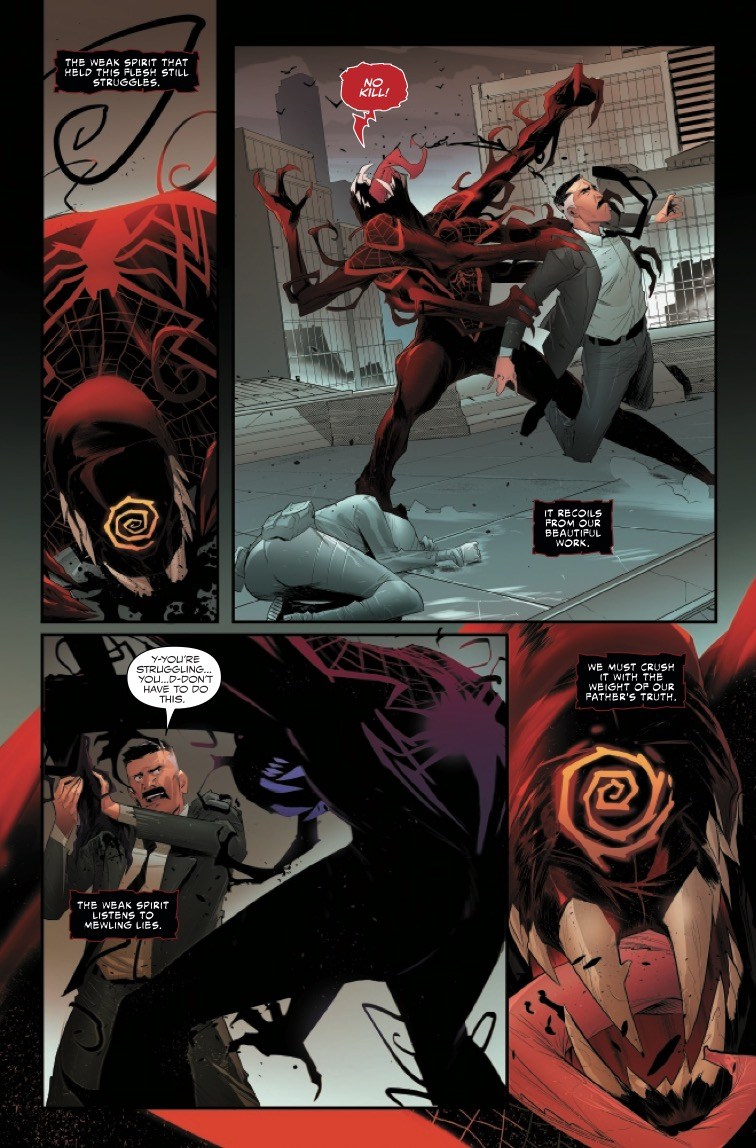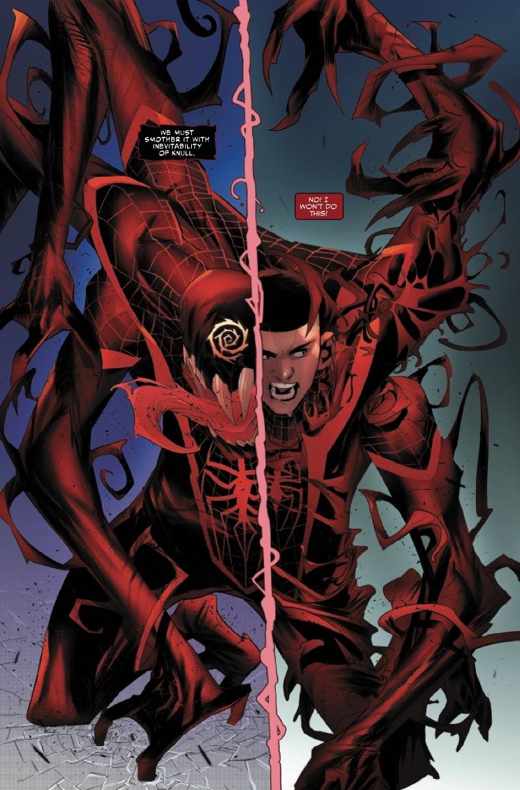 • Will a connection to the Cult of Carnage's collective subconscious give him an edge that pays off in the greater war? Or will that two-way connection compromise Spider-Man–fatally?