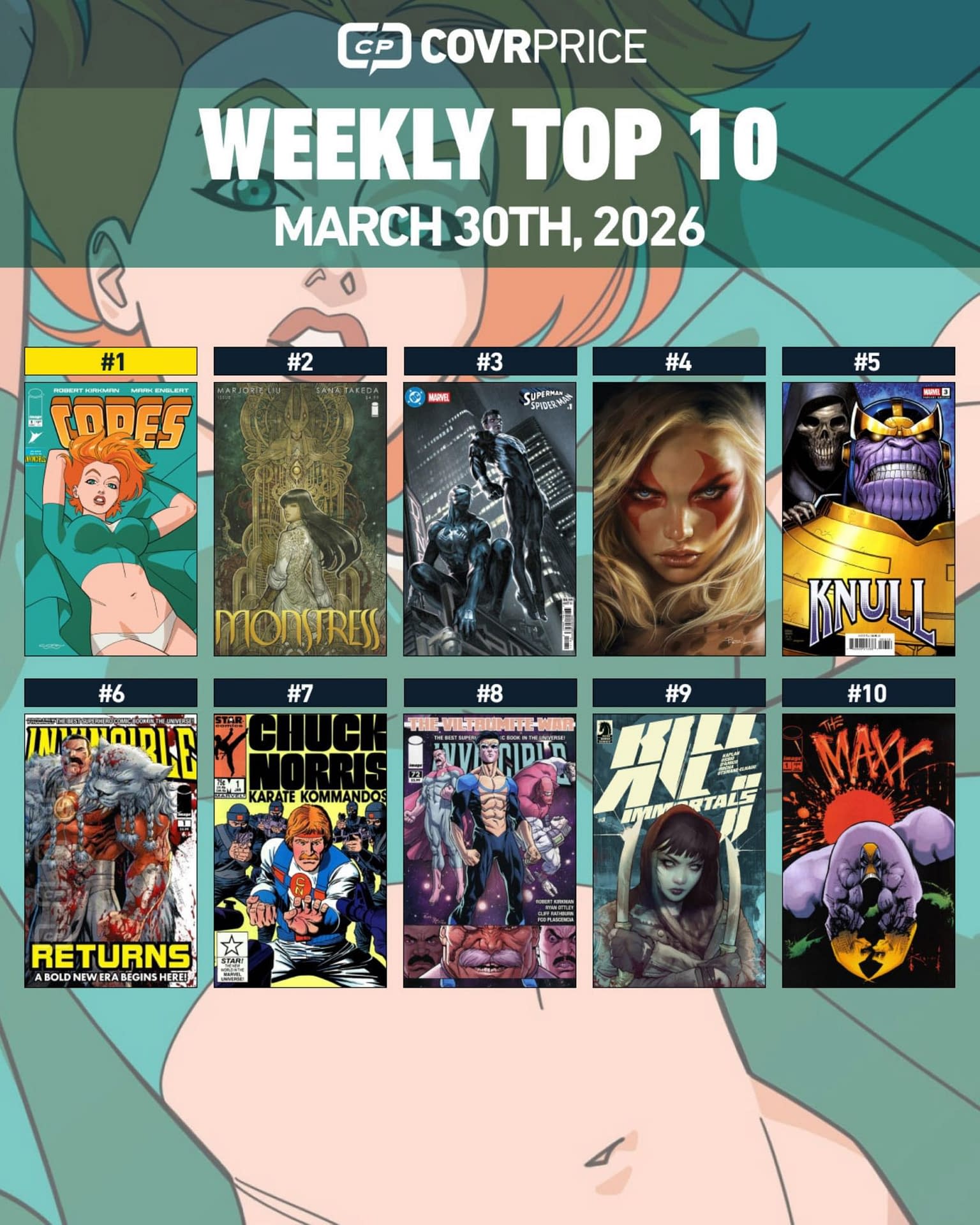 Disclaimer: CovrPrice's Top 10 list is automatically generated from real aftermarket sales data and is not manually curated. It reflects the week's top trending comic books based on a weighted mix of sales volume and price movement. This list is not a recommendation on what to buy. It simply shows what collectors are actively purchasing online and how those choices shape the market for the week ending Sunday, March 29th, 2026.