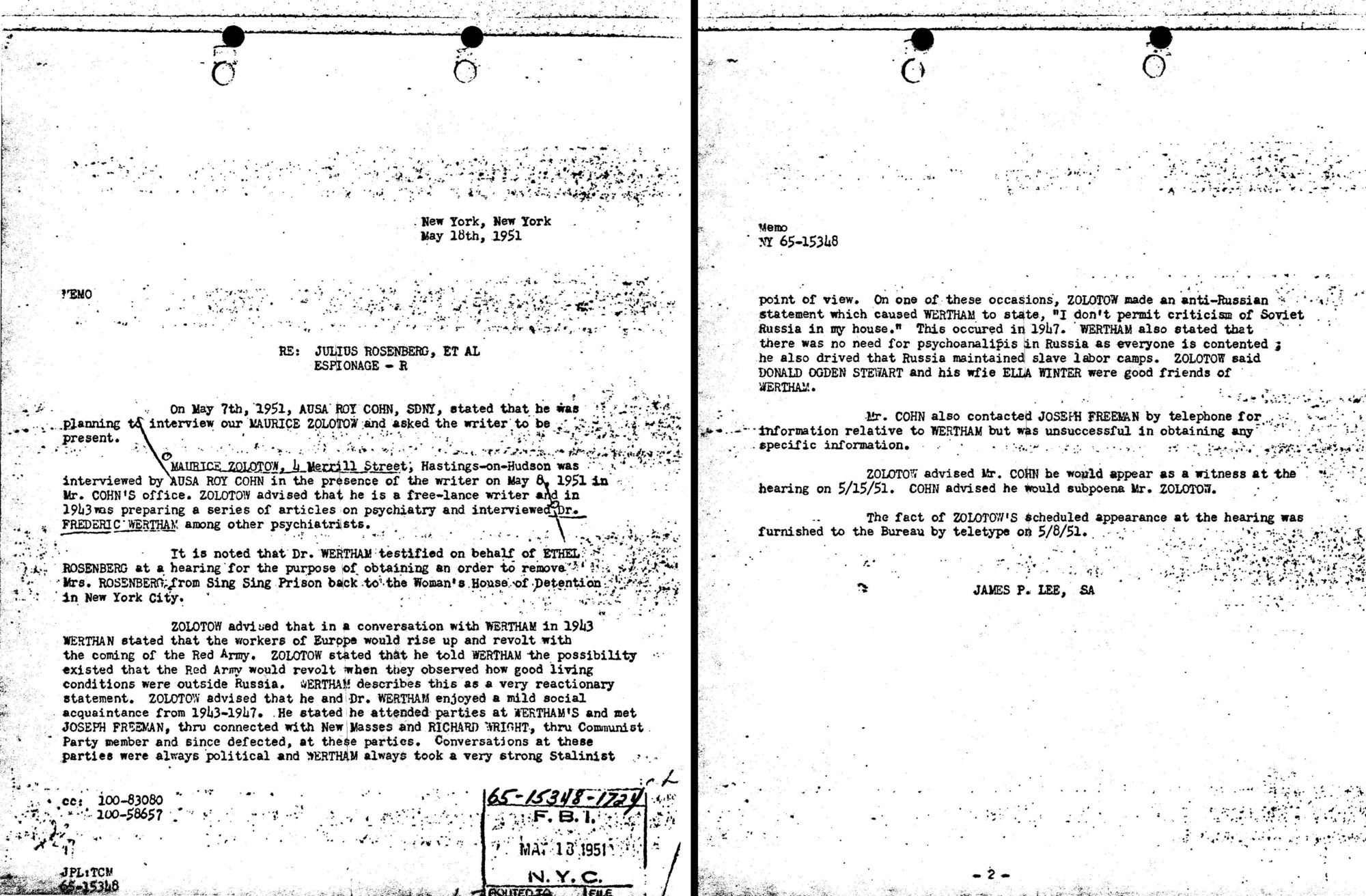 Being mindful of that theme brings us to another bizarre moment in American history: that time that Southern District of New York Prosecutor and future Donald Trump enforcer Roy Cohn investigated Fredric Wertham. During his preparations for the prosecution of Julius and Ethel Rosenberg, an informant who was acquainted with Wertham told Cohn that Wertham was an ardent Stalinist with connections to numerous key figures in the Communist Party in the United States. Somehow that matter never became public at the height of the Red Scare era — even though Cohn played a key role in that era as Joseph McCarthy's right hand man.