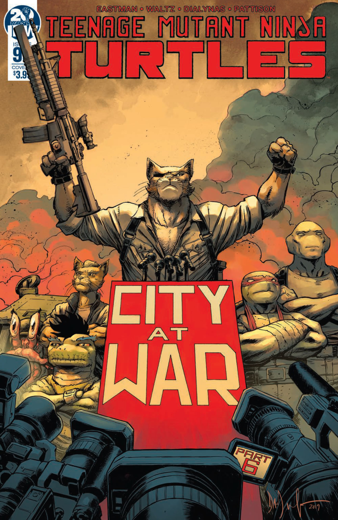 "City at War," Part 6. As power in New York City's underworld is consolidated, the populace goes to the polls to potentially elect Baxter Stockman as Mayor. A devastating act will change the city forever, and Raphael must choose which side he's on! A pivotal issue with major events that will change the course of TMNT history!