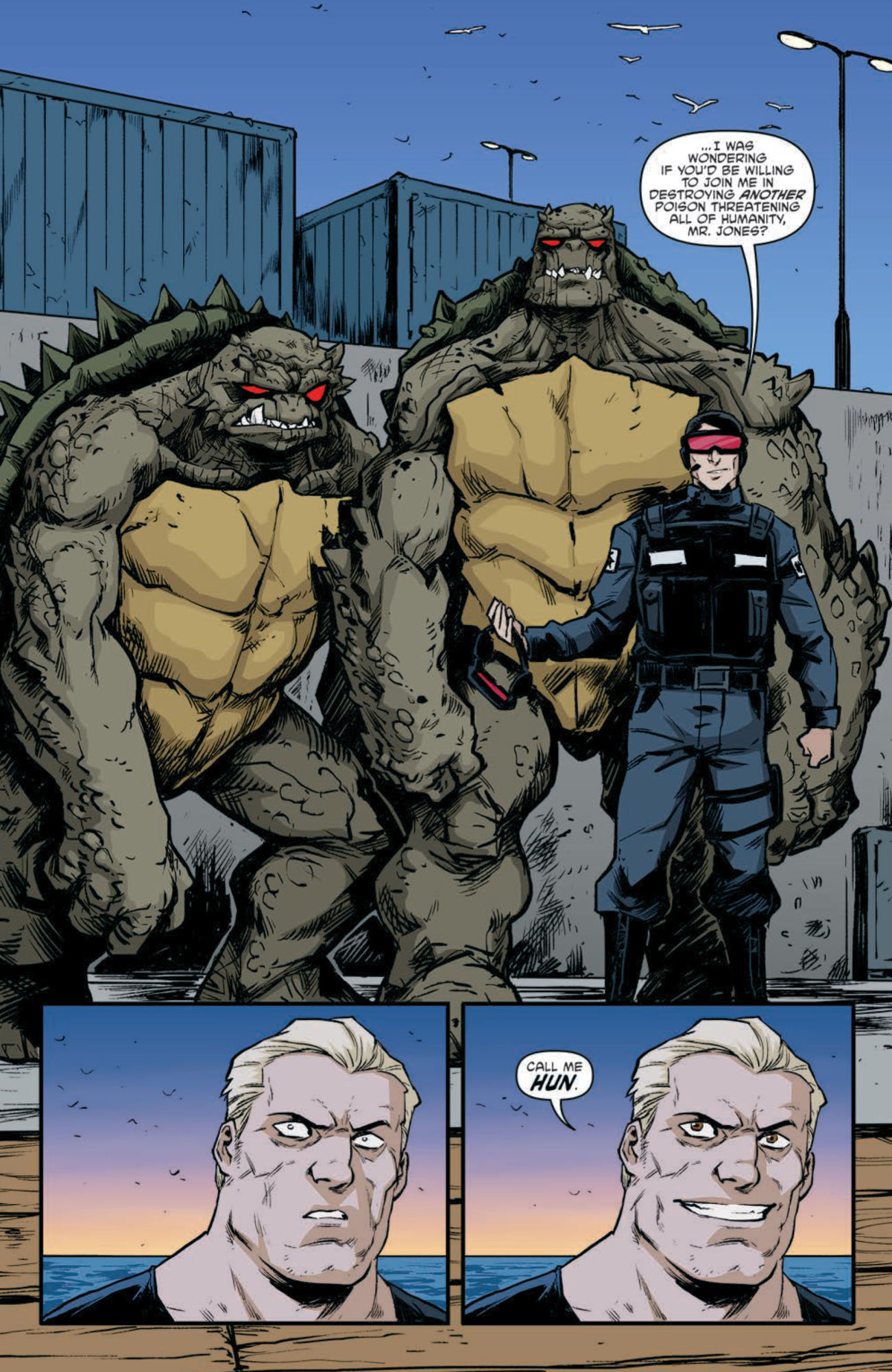 With Hun, upset at his son Casey's acceptance of new female turtle Jennika's mutation, approached by Agent Bishop with an offer to join the other team…