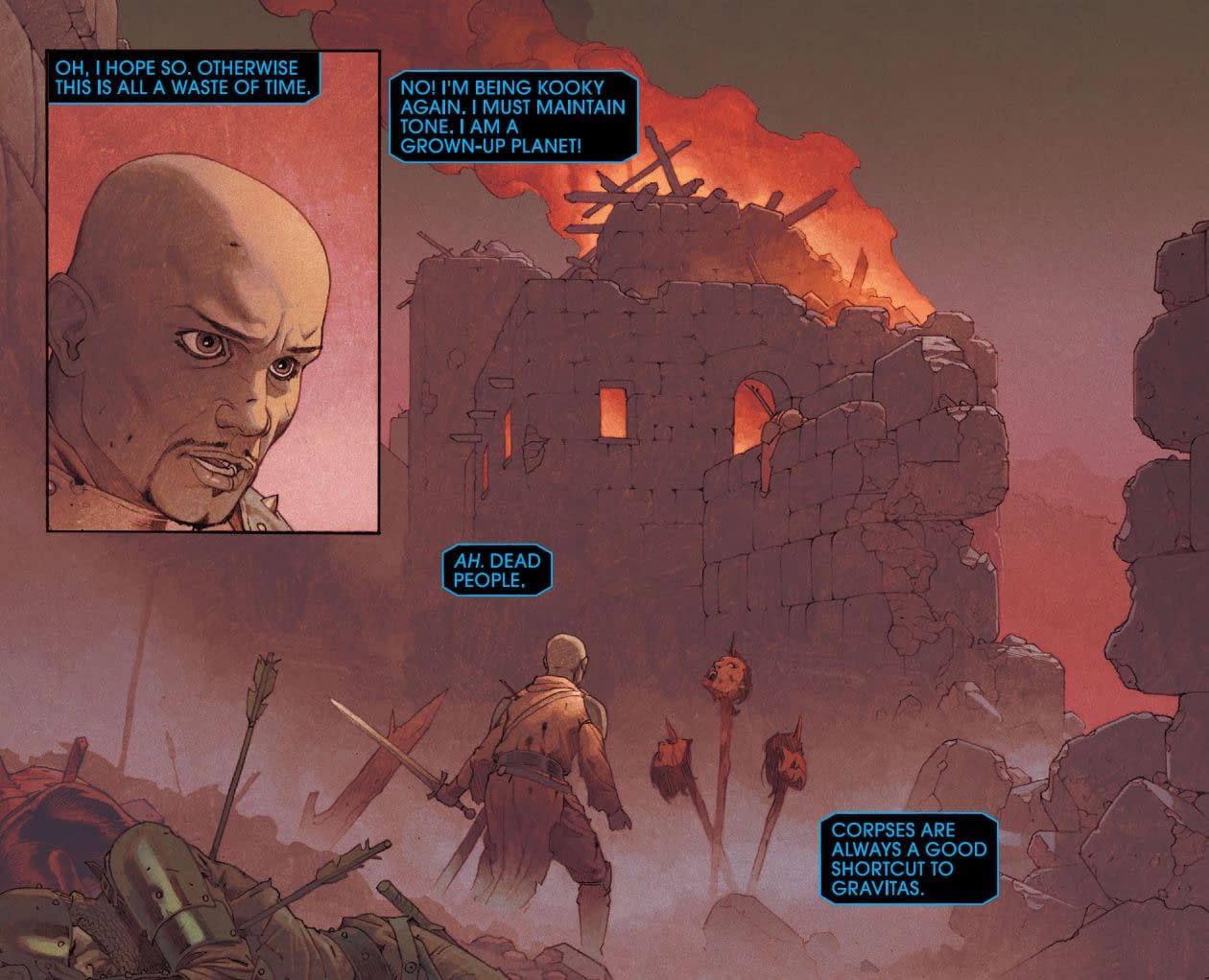 Corpses are indeed a good shortcut to gravitas. But DC's K.O. doesn;t even bother with the gravitas. This is, at its heart, Metal III. DC K.O. #1 (OF 4) by Scott Snyder and Javier Fernandez is published by DC Comics today.