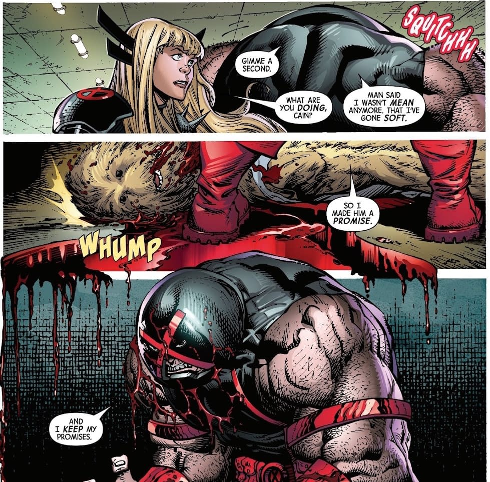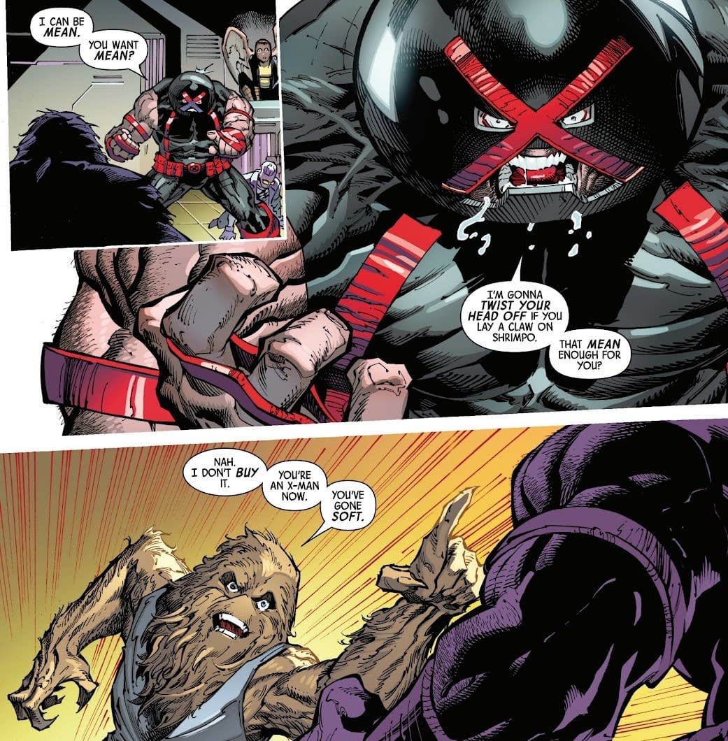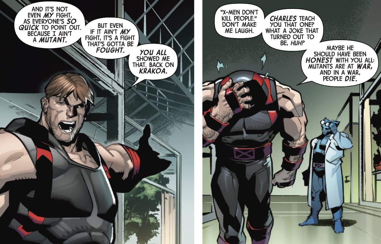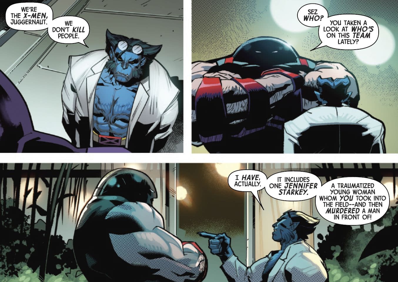 The Beast, resurrected before he became the mad scientist of Krakoa, where he committed acts of mass murder, of course. And yes, that is exactly what The Juggernaut did. From the last issue…