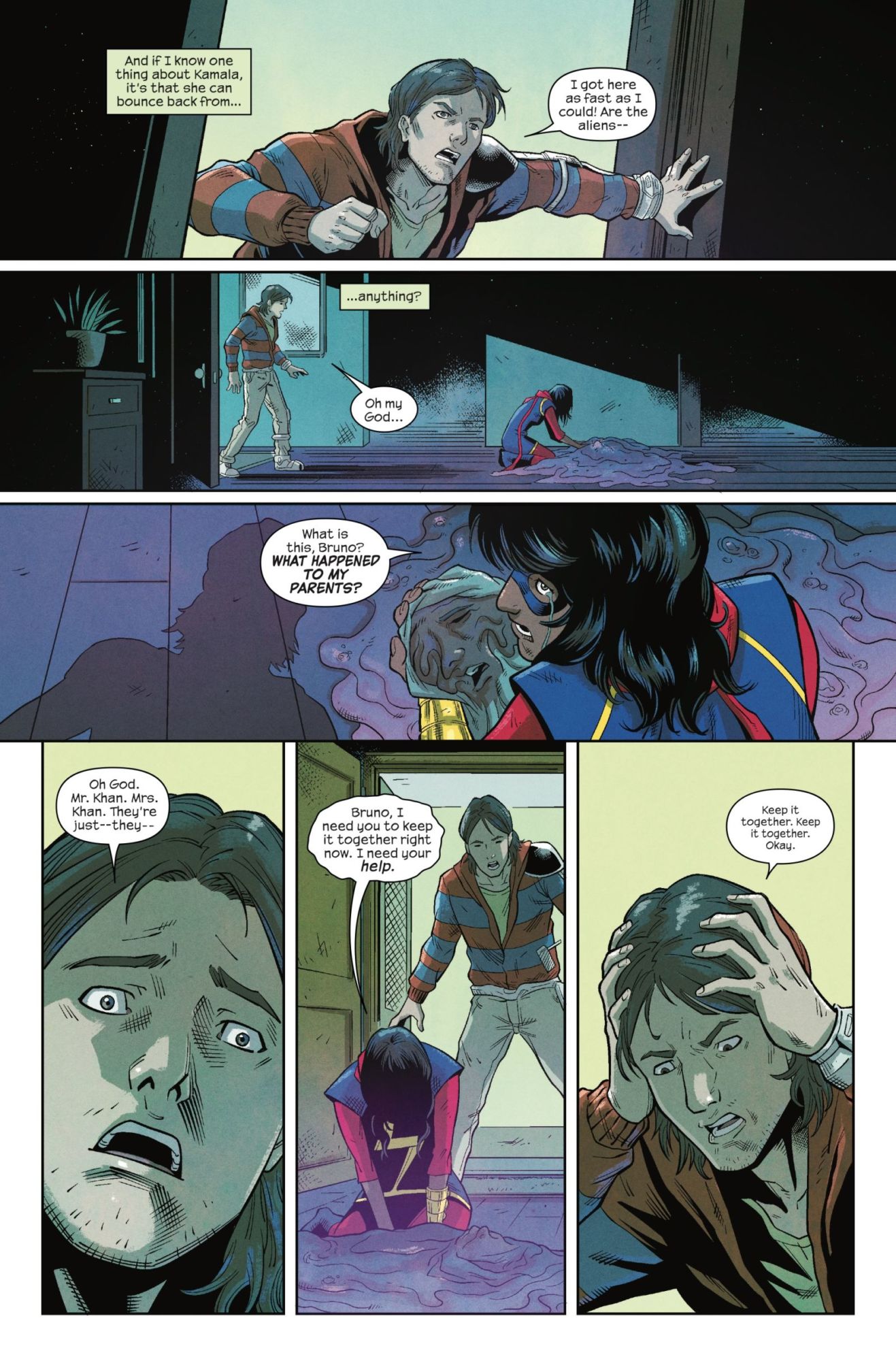 • Ms. Marvel is reeling from a devastating loss, but with an alien invasion ravaging Jersey City, she's not going to have much time to grieve!