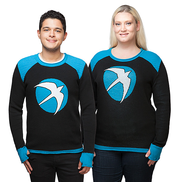 ThinkGeek and Valiant Comics have teamed up to release a line of clothing based on the hero Faith! The line only consists of three sweaters, but they're all pretty fantastic. The two cardigans list for $49.99, while the sweater lists for $59.99. Sizes range from small to 4x, and the simple design is even work appropriate.