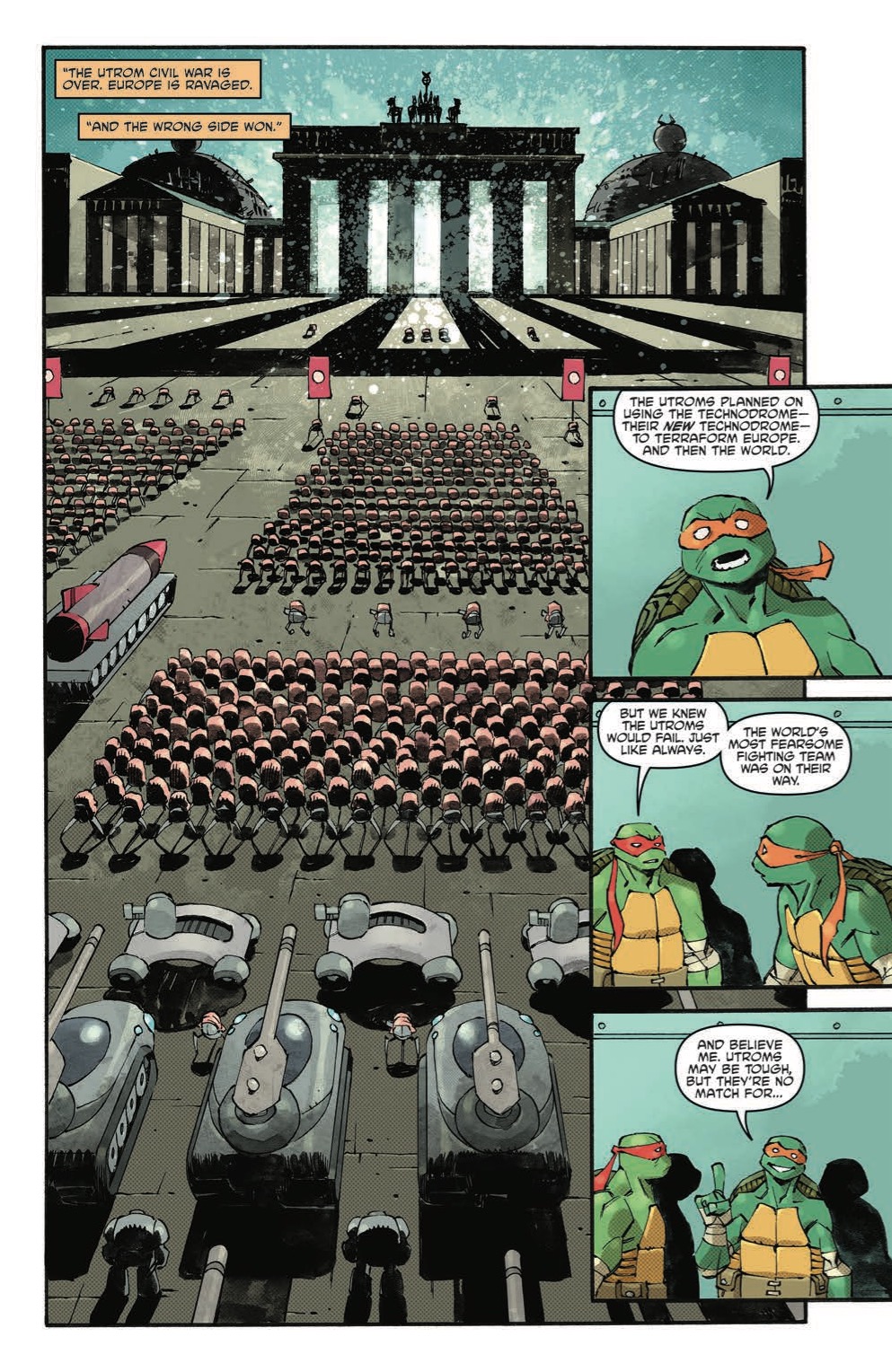 Meanwhile, the Utroms have seemingly taken over Europe, and they're holding some major rallies. Will the crowds be chanting "build the technodrome?"