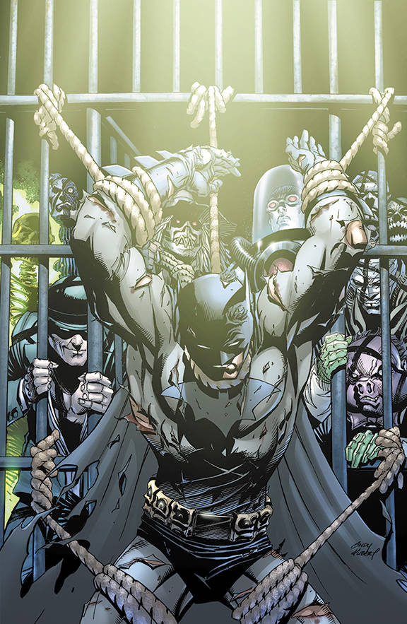 In chapter one of "The Fall and the Fallen," Batman escapes his Knightmares only to wind up in a whole other bad dream. He's locked in Arkham Asylum with his worst enemies, and the only way to get out is to fight them all. It's a gladiatorial game of madness and mayhem, all for the amusement of Bane!