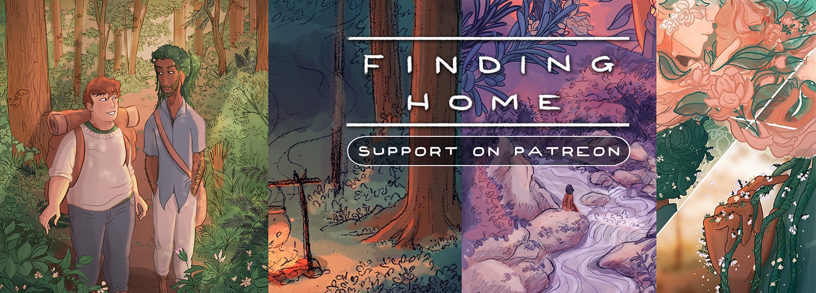 But for the immediately curious, you can catch Hari Conner's illustration work on Instagram, read Finding Home as a webcomic, get a head start on what's coming up on Patreon, or check what else they have to sell.
