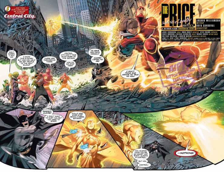 We've seen some of what Heroes In Crisis #6 brings to the Flash tomorrow. Now we get to see what the Flash brings to Heroes in Crisis in Flash #65, part four of The Price crossover with Batman, written by Josh Williamson, as PR-granted to DC's media partner AIPT.