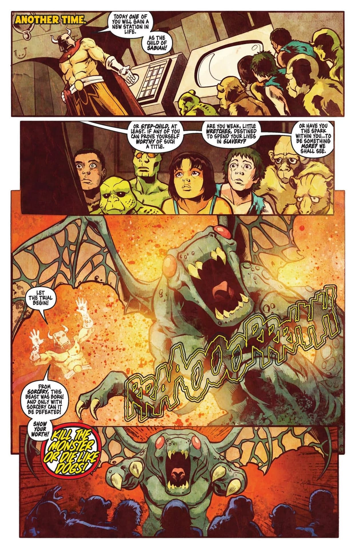- Interior preview page from 0126DE0678 Thundarr the Barbarian #3 Michael Cho Cover, by (W) Jason Aaron (A) Kewber Baal (CA) Michael Cho, in stores Wednesday, April 29, 2026 from Dynamite Entertainment