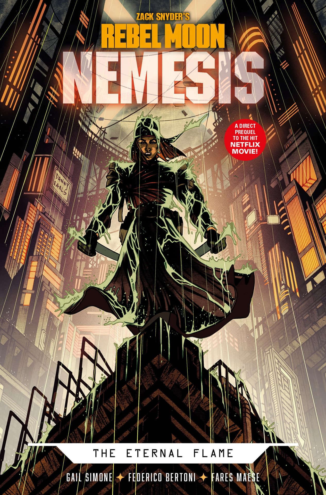 Witness the origins of Nemesis (Bae Doona), before she became the sword-wielding, cyborg assassin. This is an action-packed and badass story in the style of a revenge western, in which an innocent woman finds herself in the path of Imperium soldiers who slaughter her family. With nothing left to lose, the bereft Tatan becomes a powerful enemy to the Imperium, with a list of 16 names to cross off… Collects Rebel Moon: Nemesis #1-4