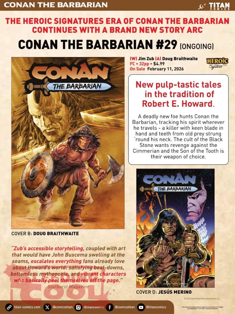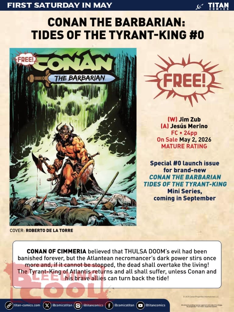 Special #0 launch issue for brand-new CONAN THE BARBARIAN TIDES OF THE TYRANT-KING Mini Series, coming in September.