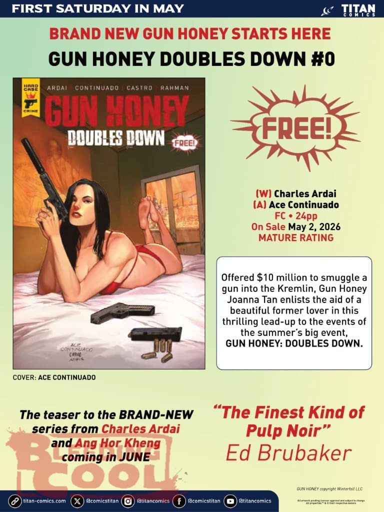 Offered $10 million to smuggle a gun into the Kremlin, Gun Honey Joanna Tan enlists the aid of a beautiful former lover in this thrilling lead-up to the events of the summer's big event, GUN HONEY: DOUBLES DOWN.