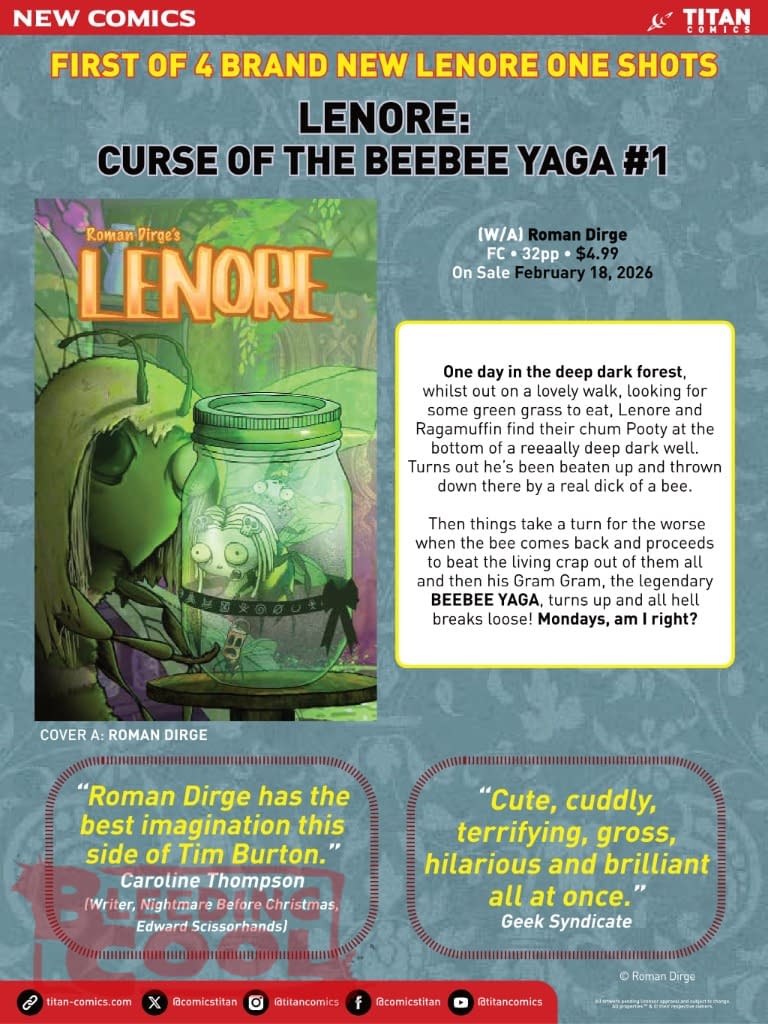 Titan Comics' Full February 2026 Solicits with Diablo: Dawn Of Hatred and Lenore: Curse Of The Bee Bee Yaga by Roman Dirge