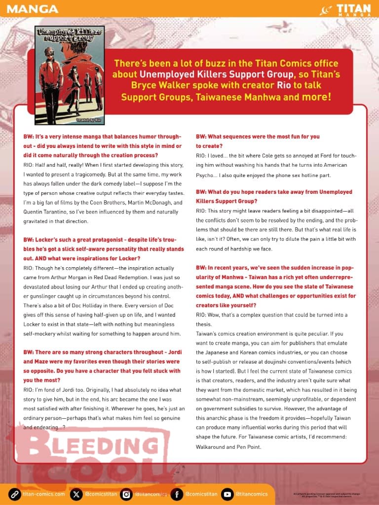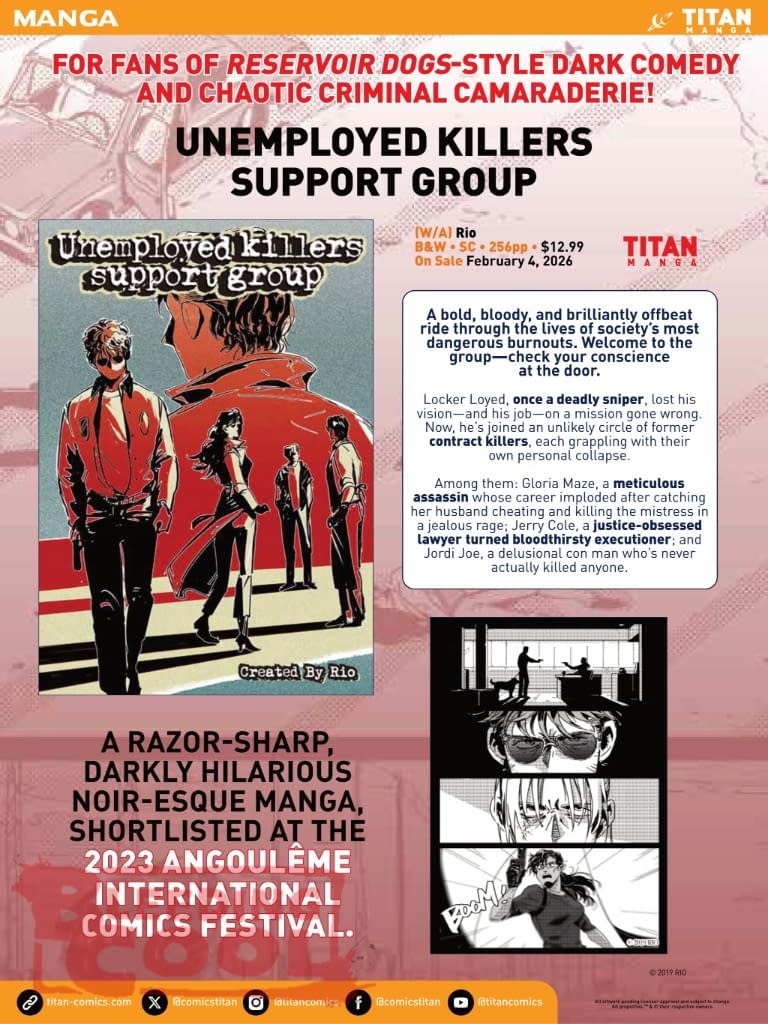 - Manga highlights include Gizmo Riser, OutSiders Vol 3, and Unemployed Killers Support Group Vol 1