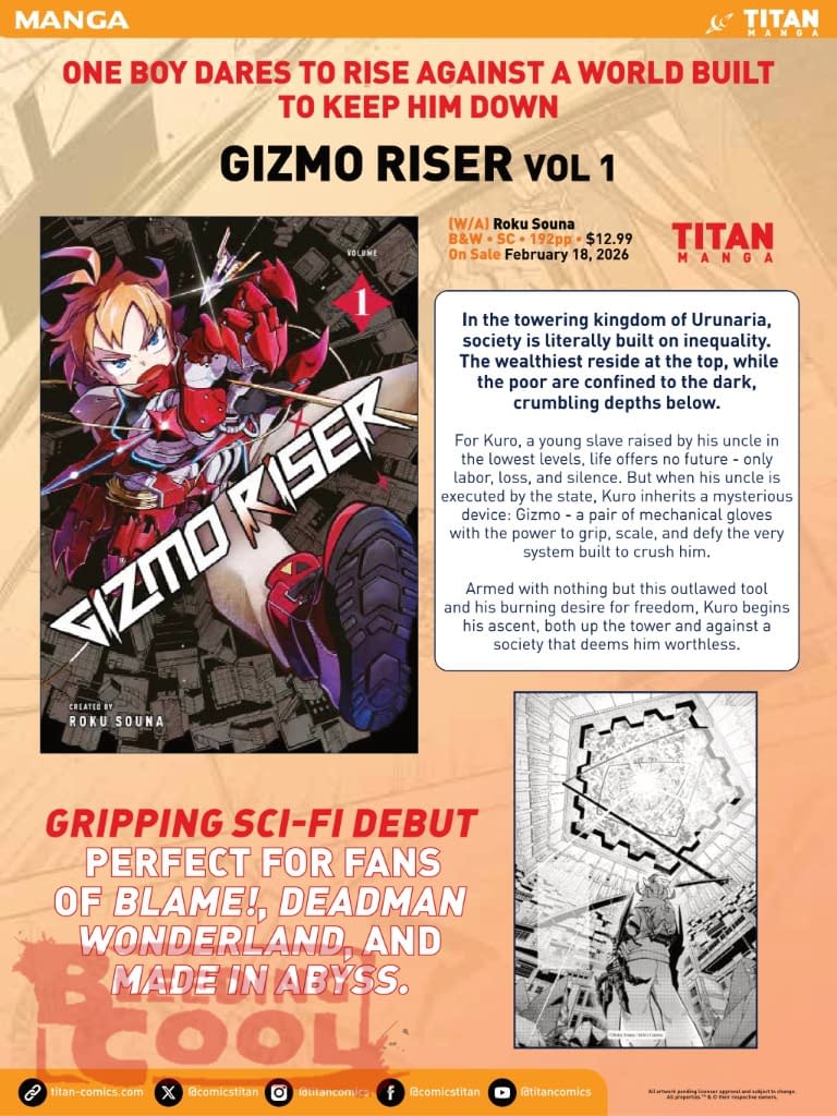 For Kuro, a young slave raised by his uncle in the lowest levels, life offers no future – only labor, loss, and silence. But when his uncle is executed by the state, Kuro inherits a mysterious device: Gizmo – a pair of mechanical gloves with the power to grip, scale, and defy the very system built to crush him.