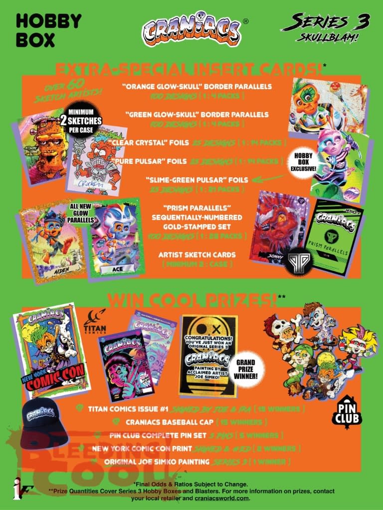 From the collective, creative Craniums of Ira Friedman (Ex-Topps) and Joe Simko (Garbage Pail Kids) comes Craniacs, a refreshingly new and totally original comedy/action/adventure that has blasted its way across collectible trading cards and now into comics!