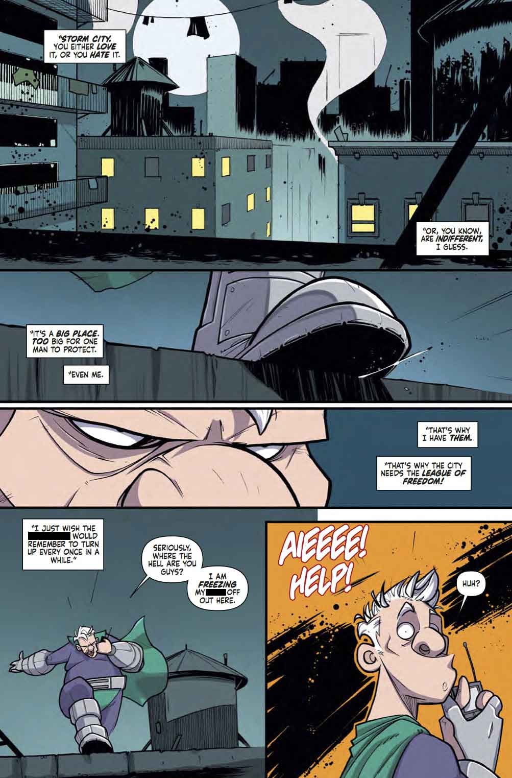 Here they come, the world's most useless, inept and dysfunctional superhero team ev-ver! Collected here in one volume are the first 2 full adventures of the League of Freedom both written by Barry Hutchison, one of the writers of the show. Featuring two riotously funny, violently profanity-filled adventures that give crime fighting a bad name!