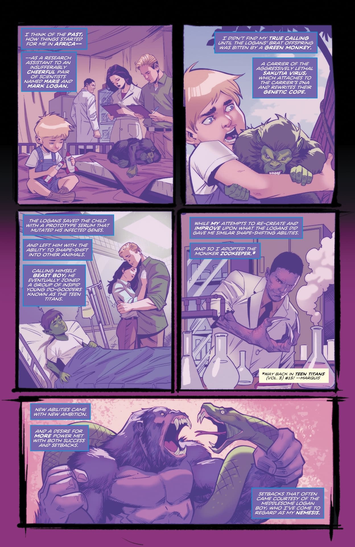 In Titans #27, Beast Boy and the Doom Patrol battle the Zookeeper's mutant monsters in a wild rumble to reclaim lost powers. Who's the apex predator?