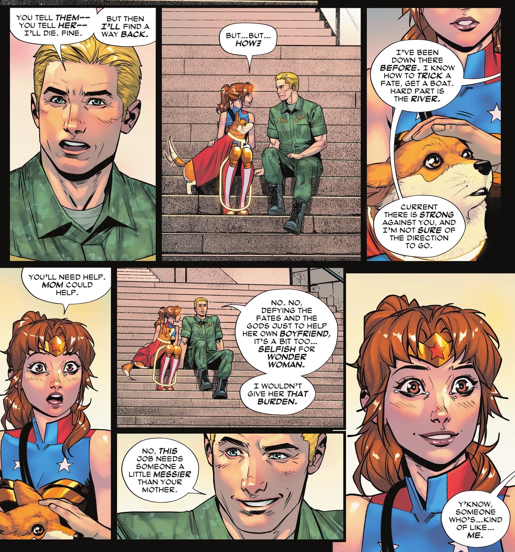 …noting emotional beats from Trinity #6 where Steve promises Lizzie, "I'm coming back. I don't know when, but I know how."
