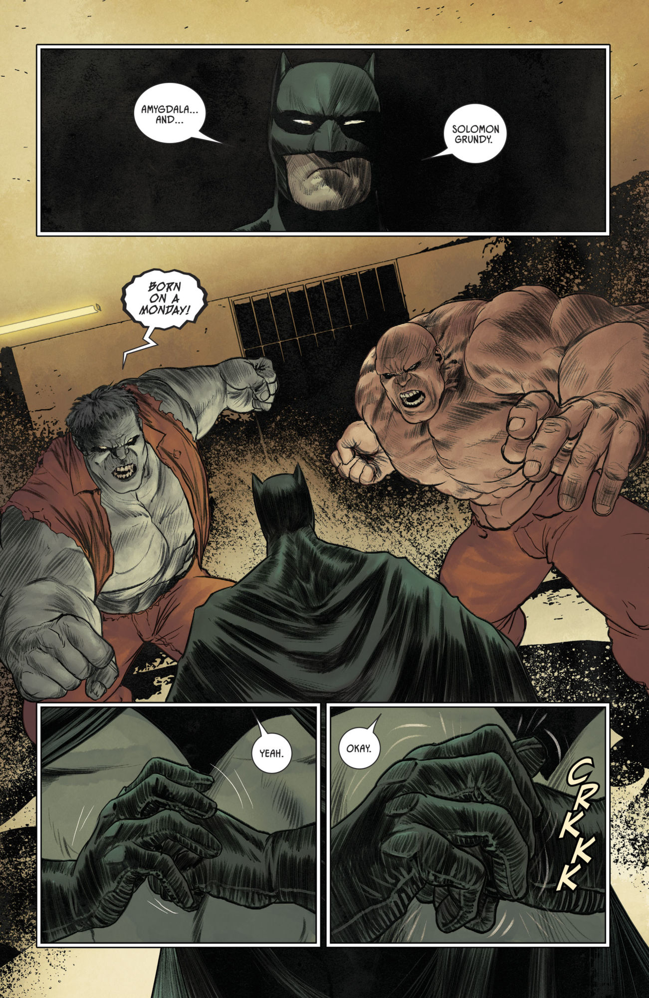 What does that say to me? That this all a lie, and Batman has never left his Knightmares. Couple with the ease of which Batman ploughs through his rogue's gallery, seemingly as a mystical creature who defeats his victims by fear – criminals are after all a superstitious and cowardly lot – this is just as dreamlike as anything we have seen in the last five months.