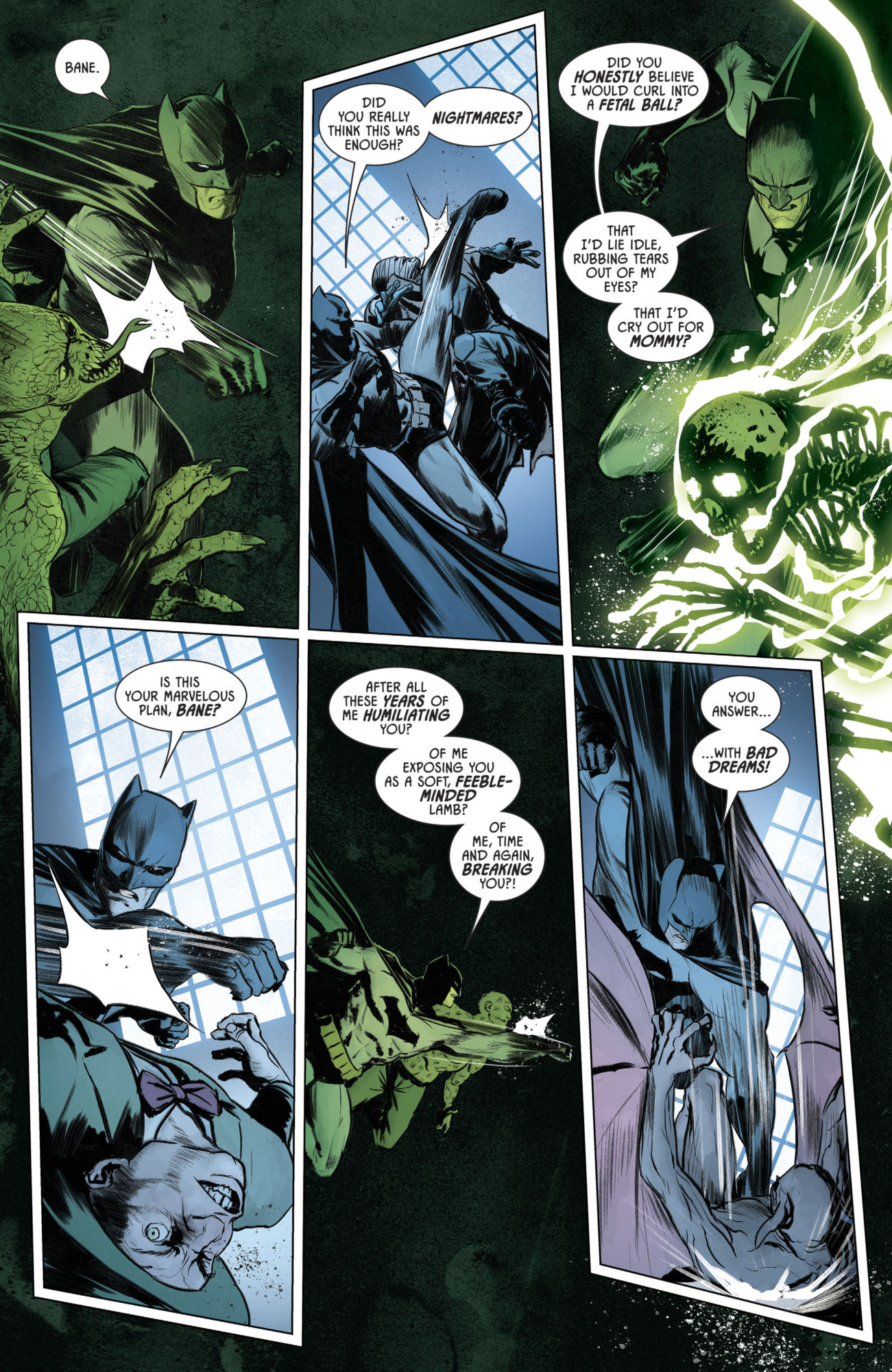 Spoilers on for Batman #70 folks, by Tom King, Mikel Janin, Jorge Fornes and Jordie Bellaire. You have been warned going forwards, as today's sees Batman come out of his imposed dream coma in Arkham Asylum, placed there by his transdimensional father Thomas Wayne and Bane who have found a common cause in stopping Bruce Wayne from becoming Batman, and bust his way out, beating down lots of his villains, on his way to tackle both his father and Bane with a Bat-army.