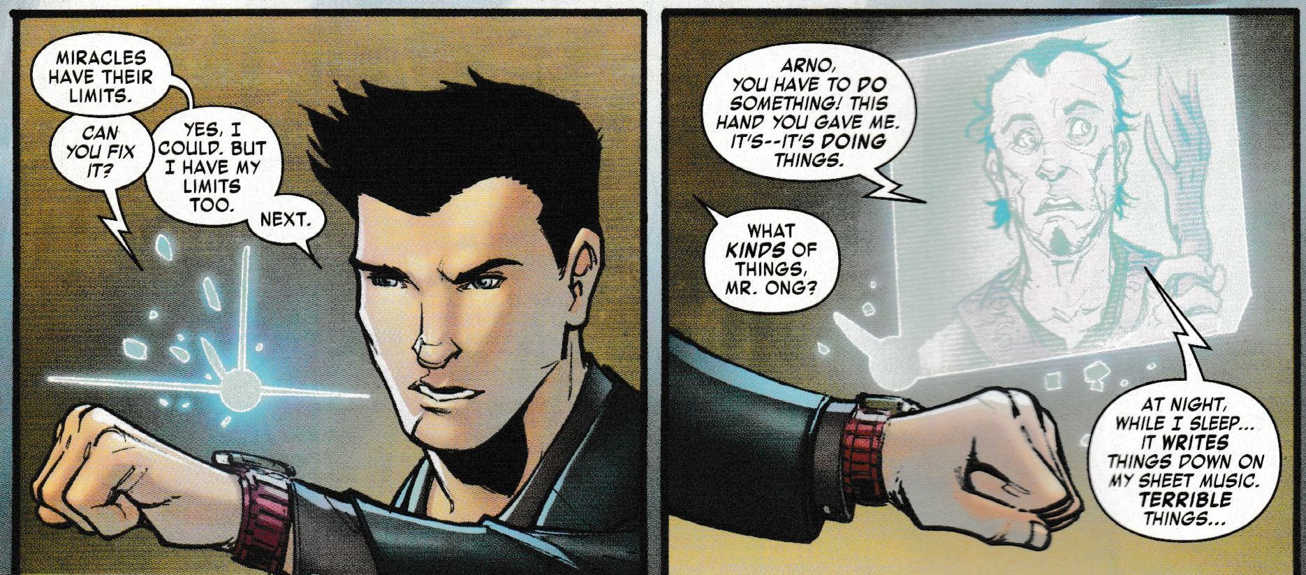 And here's why. We have a comic starring Arno Stark looking at projects around the world that interest him. Including a transplant of a new arm onto a violinist he has a strong appreciation of.