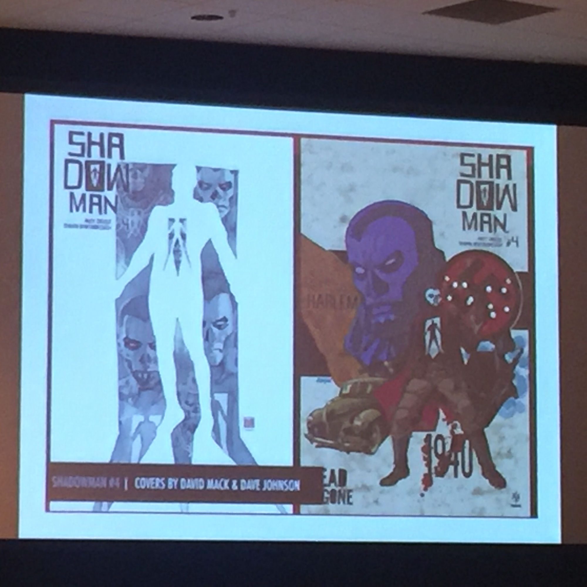 Andy Diggle's Shadowman is coming next month, Diggle's first Valiant book which he's been working on for a year and launching the same week as the aforementioned X-O Manowar #1. Valiant wanted Diggle to have a 2-3 year roadmap for the comic, which he does. Shadowman will flesh out the supernatural corner of Valiant, especially the Deadside that will affect other books. A new arc beginning with Shadowman #4 called Dead and Gone will see Shawn Martinbrough joining Diggle, and introducing the 1940s Shadowman. Shadowman #8 will have a new arc called Rag and Bone bringing back Master Darque and reconnecting him to Shadowman.