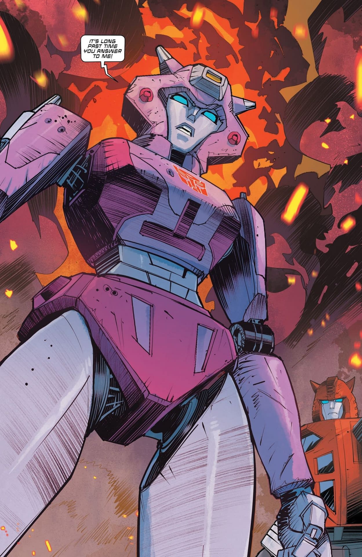 Elita-1 is now Elita Prime, the new leader of the Autobots, chosen by the Matrix, and a swish new look to boot. Optimus Prime is no more, and the Autobots have a new Cybertron-focused mission, rather than something Earth-based. Some readers had interpreted an upcoming solicitation saying "Elita returns to Cybertron with a surprising new Autobot team" as meaning she had been defeated and sent packing. Seems like it may have a different interpretation now. Transformers #30 by Robert Kirkman, Dan Mora and Mike Spicer is published by Image Comics/Skybound on Wednesday.