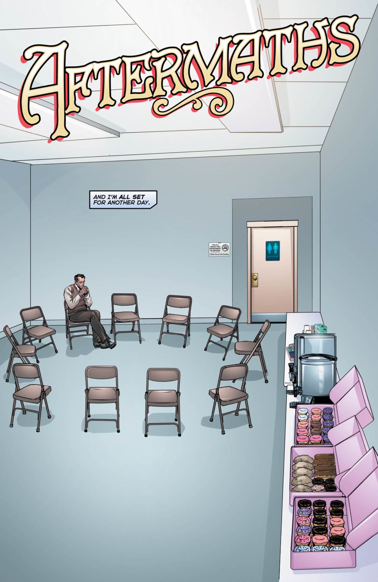 Because Astro City #50 is the sequel to Astro City 1/2: The Nearness Of You, twenty years after it was published. And a husband of a woman he never met, keeping her memory alive through support groups for those affected by superhero activity in Astro City. We hear some tales, we have to guess at others. And there are doughnuts. But it indicates that something is coming, And there are endings too.