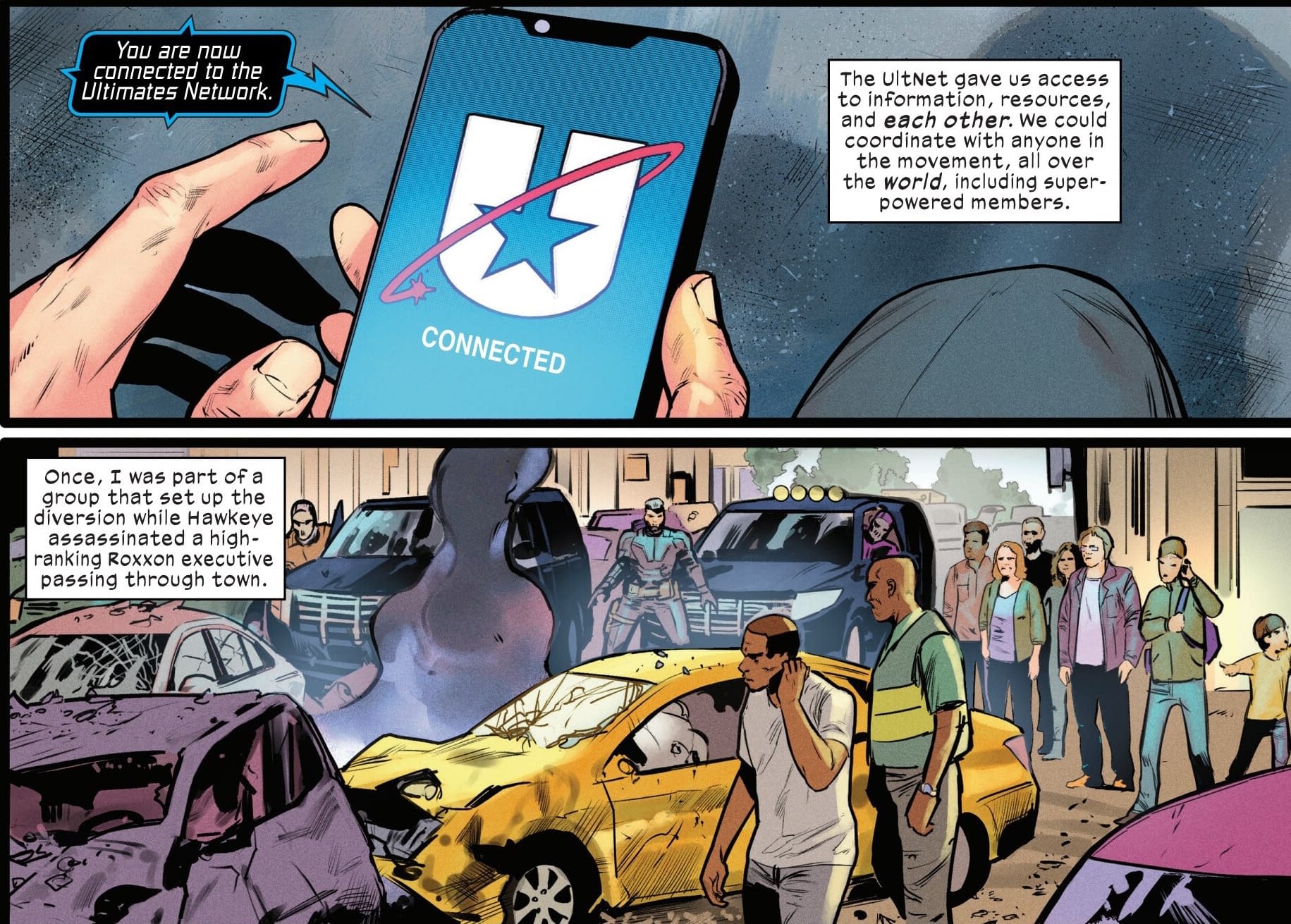 FROM THE SKIES TO THE STREETS – THE NEW ULTIMATES! The Maker is only three months away and time is running out. But the Ultimates network is bigger than ever now that they're inspiring more and more people to join their cause! A can't-miss street-level adventure from the Ultimates' new recruits!