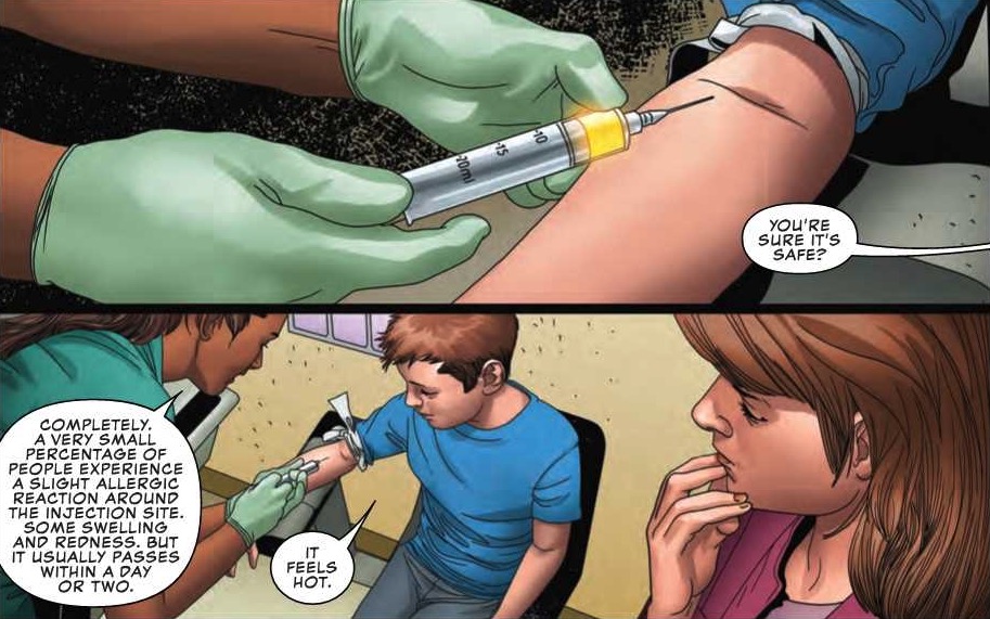 Of course, we don't know what was actually in the vaccine. Sure, it's almost certainly the mutant cure invented by The Beast, stolen by Emma Frost, and handed over to O.N.E. to weaponize as a method of eliminating all mutants. But how do you know there's not an anti-mutant cure in any vaccine? Well, besides the fact that mutants don't actually exist. Look, we're just trying to see where Matthew Rosenberg is coming from here.