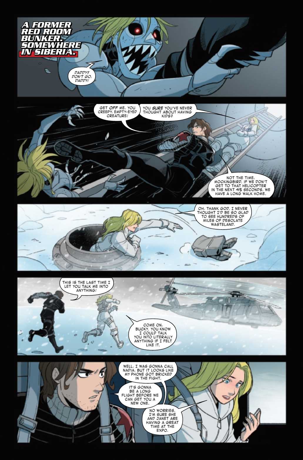 Unstoppable Wasp sadly comes to an end this week with Unstoppable Wasp #10. But the series intends to go out with an important message for its readers: don't violate the user agreement on your technological devices. It happens that Mockingbird and Winter Soldier entered a Siberian Bunker in search of Wasp's mom, and there they found themselves under attack by some very needy robots…
