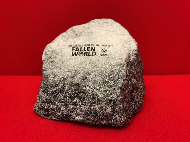 ComicsPRO attendees will also receive "Welcome Bags" from Valiant and even more retailer-exclusive goodies during roundtable chats with Valiant staff. Want to relieve some stress? Squeeze a chunk of New Japan with the FALLEN WORLD stress ball, based on the upcoming series by Dan Abnett and Adam Pollina debuting on May 1st. Need to jot down some important secrets? Use the FALLEN WORLD pen! And after a long day, unwind with the FALLEN WORLD shot glass.