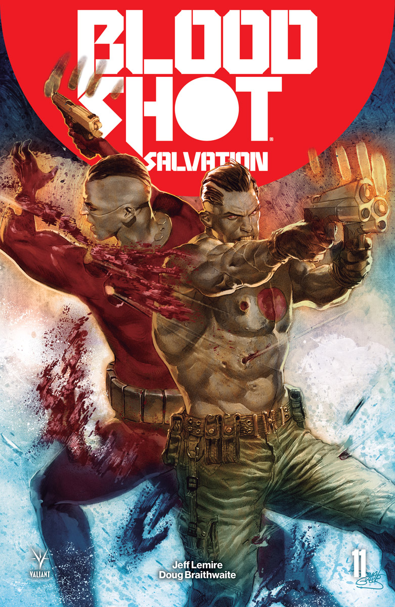 To save his daughter's life, Bloodshot brokered an unthinkable bargain…and has been thrown forward two thousand years in the future to 4002 A.D.! But preserving life requires a sacrifice…and now, he's on the hunt to take out the one man standing between him and the safe return of his family! Too bad the only thing standing in his way is…Bloodshot? When the 41st century's Bloodshot finds out Ray Garrison has come to town, all hell is bound to break loose! Eisner Award winner Jeff Lemire (Black Hammer) and master storyteller Doug Braithwaite (X-O MANOWAR) are about to pull the pin on the next explosive chapter of "THE BOOK OF REVELATIONS" with a centuries-spanning gunfight for the ages!
