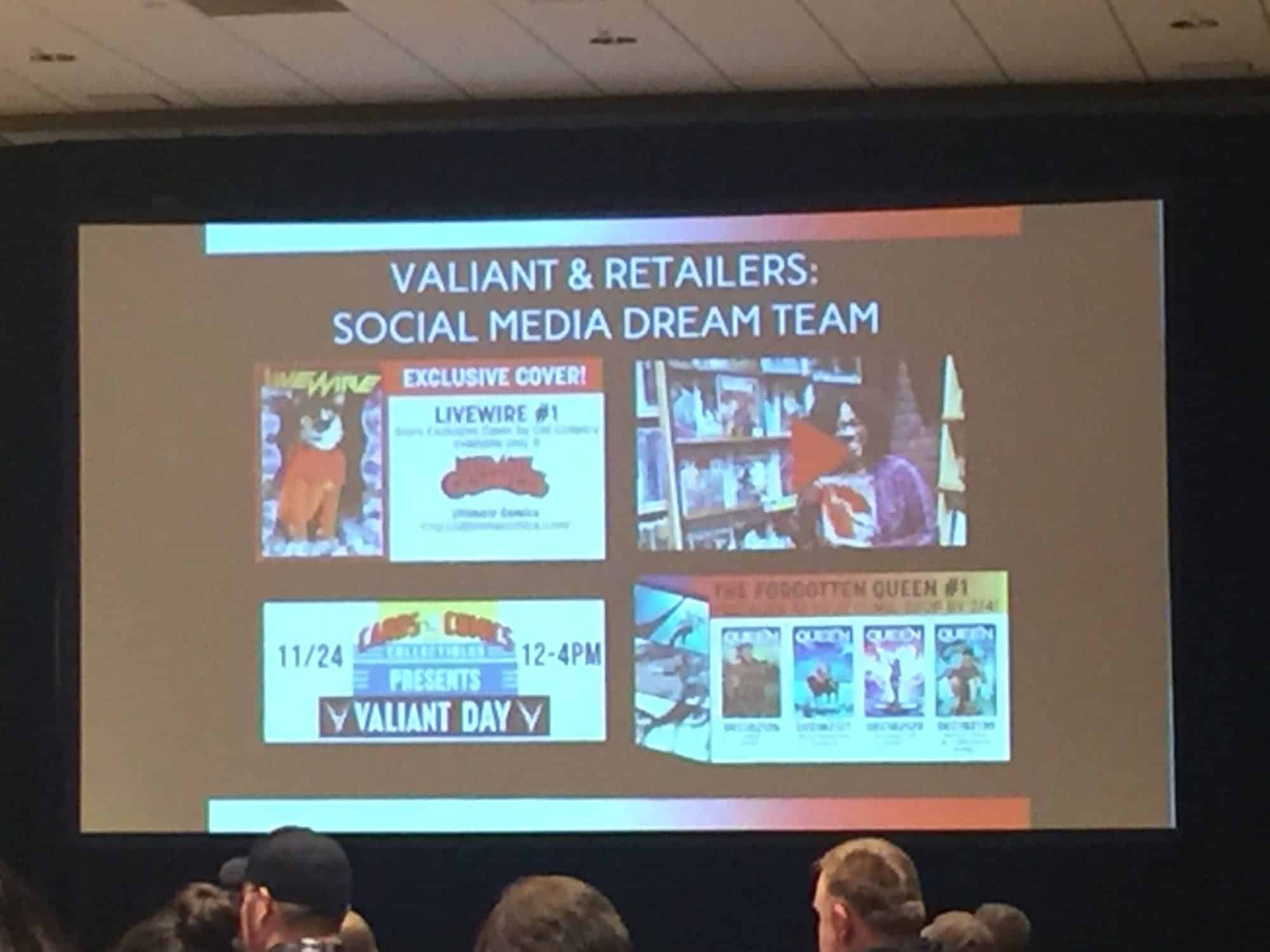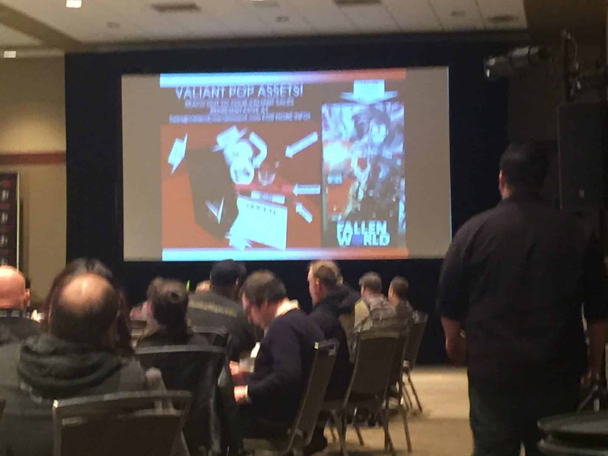 Ian Melton gave us a look at the Valiant presentation at the Diamond Retailer Breakfast at Emerald City Comic Con (after an extraordinary slow moving chase through the Seattle traffic, and battle with security)
