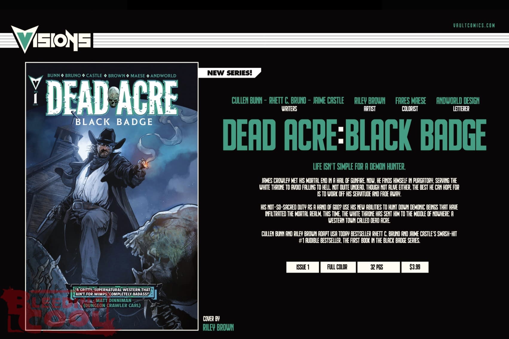 - Vault Comics launches Dead Acre #1, a supernatural western adapted by Cullen Bunn and Riley Brown