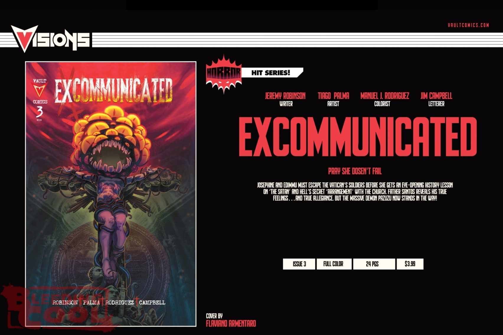 Vault Comics' full July 2026 solicits and solicitations include the launch of Dead Acre: Black Badge #1 adapted by Cullen Bunn and Riley Brown from the Western novels by Rhett C. Bruno and Jaime Castle, and introduces James Crowley, a demon hunter who died in a hail of bullets only to wake up in purgatory as a reluctant Hand of God. Tasked with banishing demonic forces from the mortal realm, Crowley finds himself in the dusty, devil-haunted town of Dead Acre. Think The Witcher meets The Dresden Files meets Jonah Hex. And as well as more Excommunicated, there are collections of Barbaric, Nectar, Godfather In Hell and Primal Hunter, as well as light novels Monsters and Hell Difficulty Tutorial.