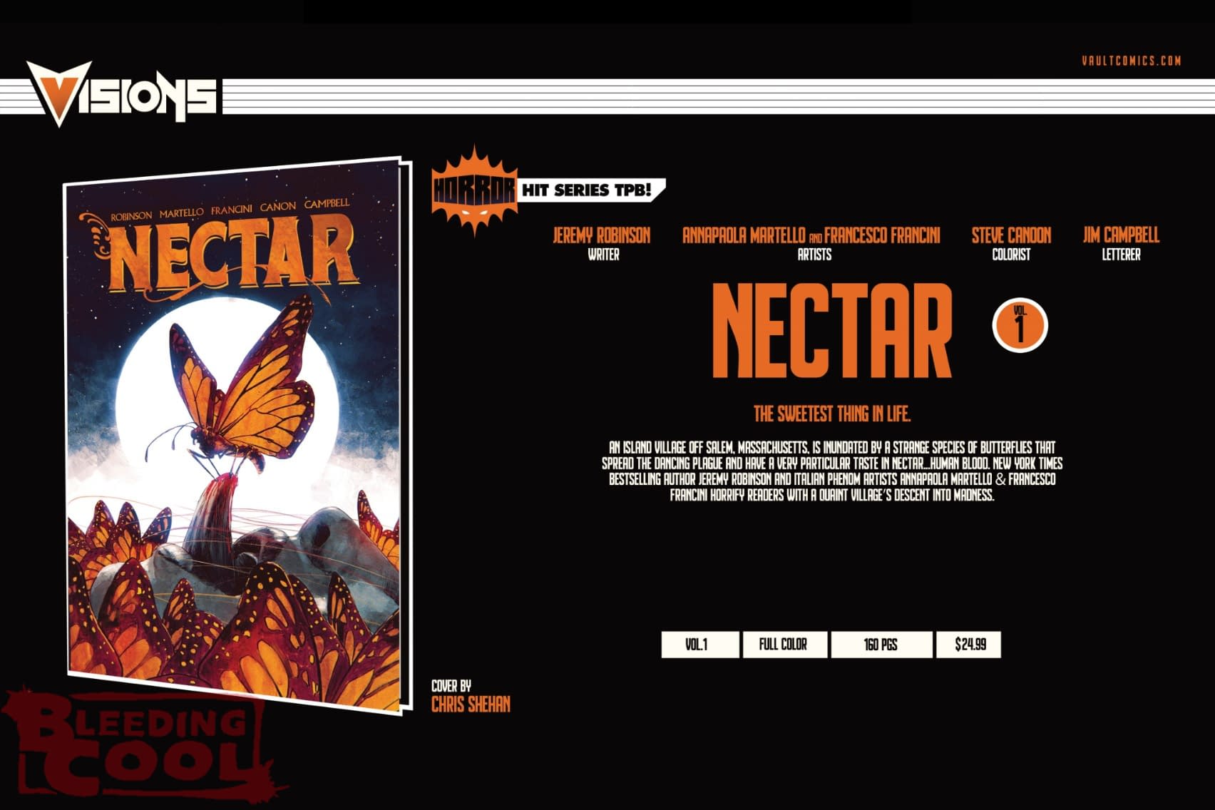 - Nectar Volume 1 lands, as butterflies bring a human-blood-fueled plague to a Salem island village