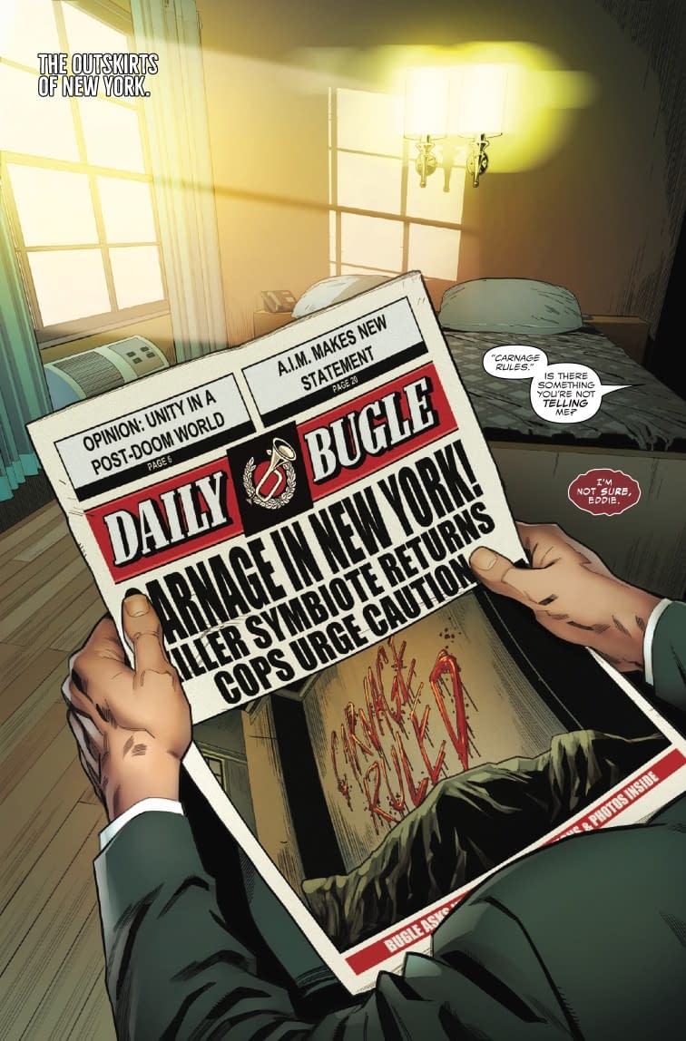 - Eddie Brock returns with a Carnage-sized secret and a mysterious connection to the murder investigation that promises shocking developments for longtime Venom fans