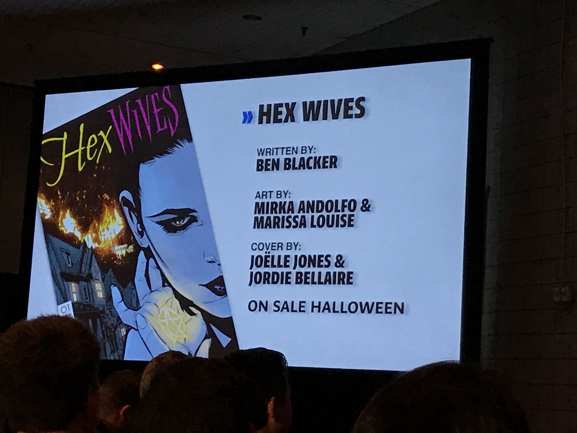 Hex Wives is a drama written by Ben Blacker about witches that are brainwashed by the men in power to be Stepford Wives which stemmed from Blacker channeling his anger about current events. "Over the course of the story arch they find out they are witches being held against their will by these men who fear them and therefore try to control them. Get it?" Blacker added. Available on Halloween.