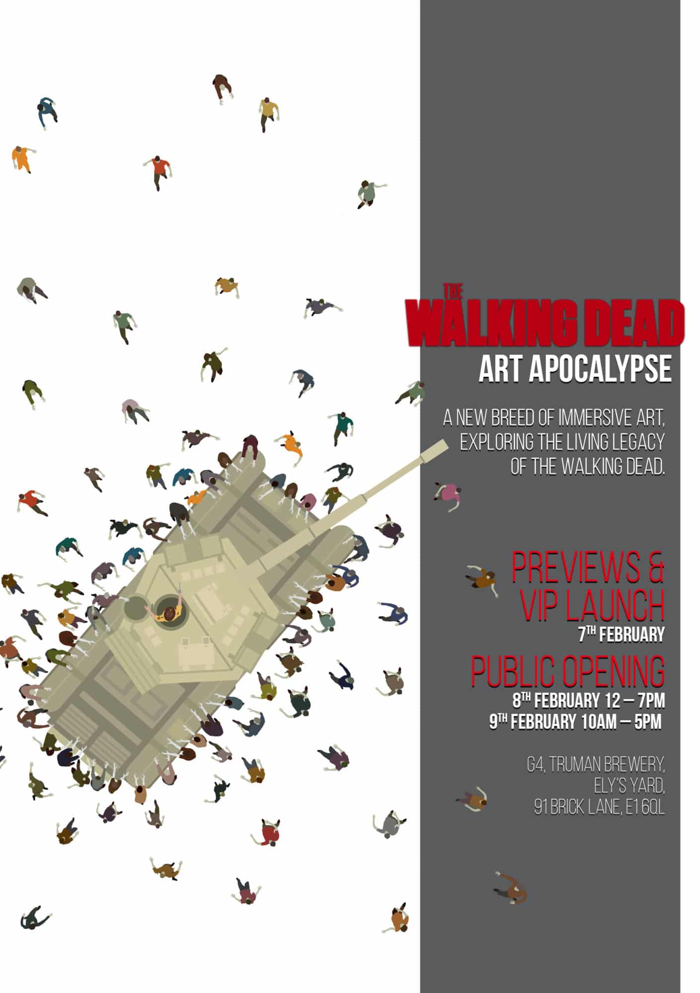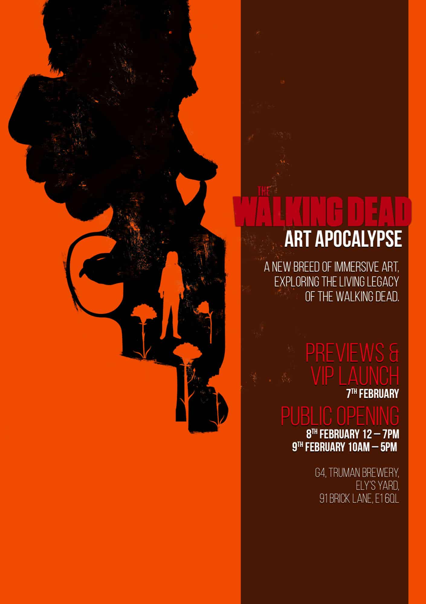 An official Walking Dead immersive exhibition and art gallery is coming to London at a pop-up space in Truman Brewery on Brick Lane. Right next to the bagels store, the cereal killer cafe, a brace of Indian restaurants, and everything else that makes life worth living. Sorry, I'm still on diet.