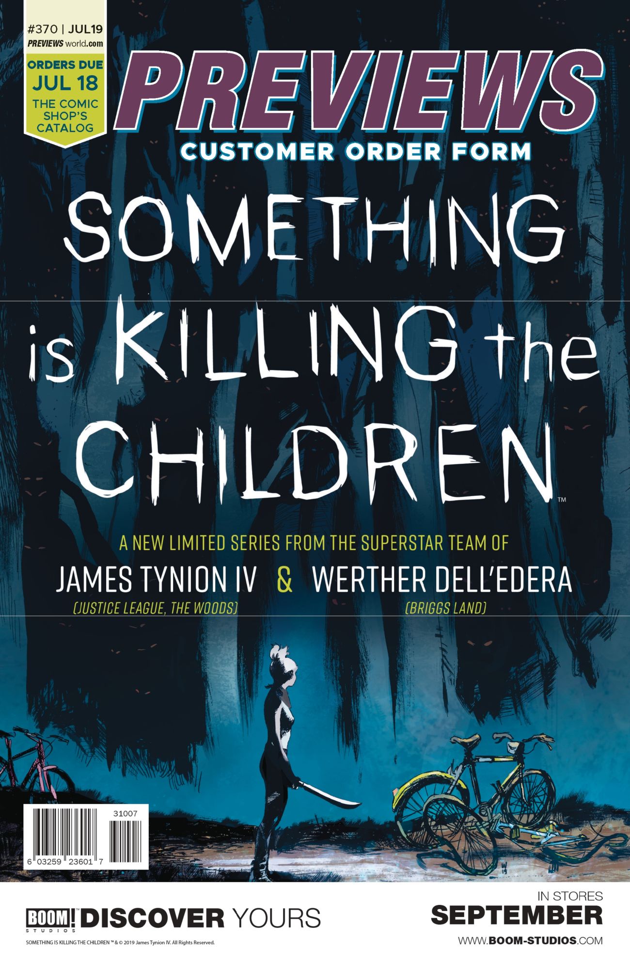 While James Tynion IV and Werther Dell'Edera's horror series Something Is Killing the Children from Boom! Studios is on the order form front cover.