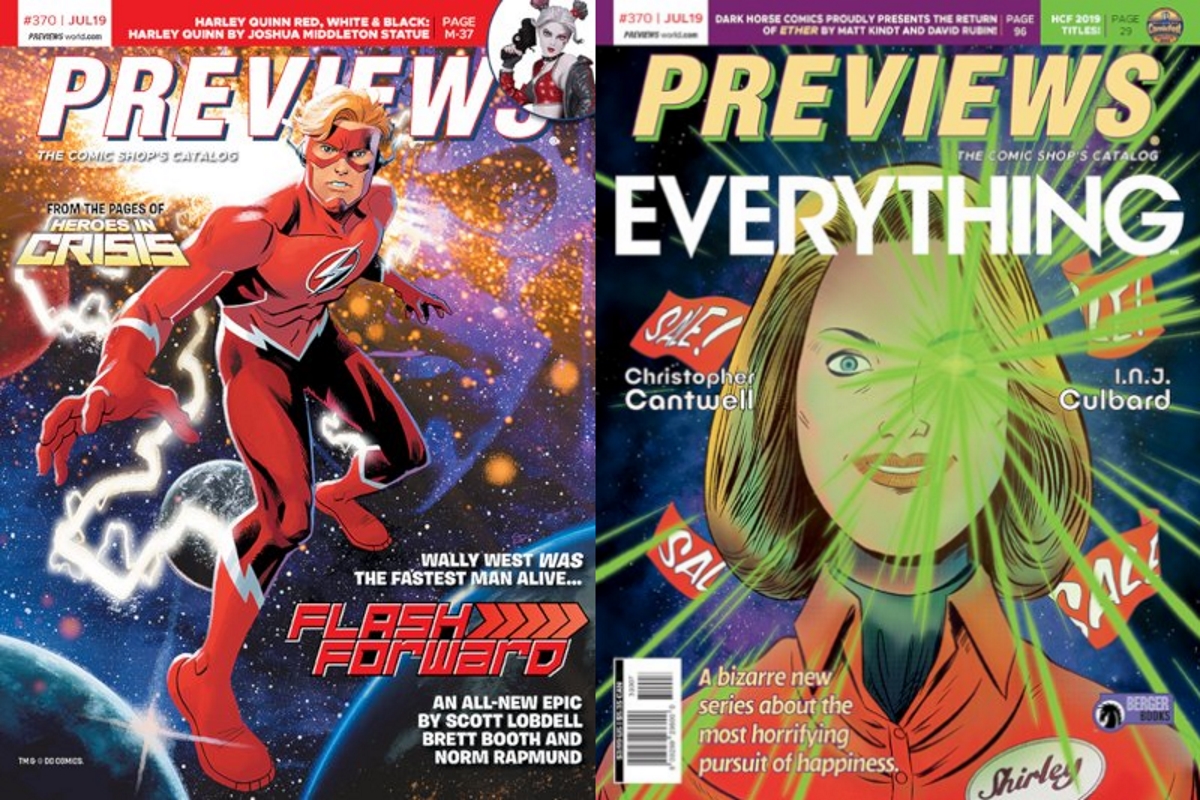 DC Comics' Flash Forward #1 by Scott Lobdell, Brett Booth and Norm Rapmund is on the front cover of next week's Diamond Previews catalogue, for items shipping in September, While on the back is Dark Horse and Berger Books' Excellence #1 by Christopher Cantwell and I.N.J. Culbard.