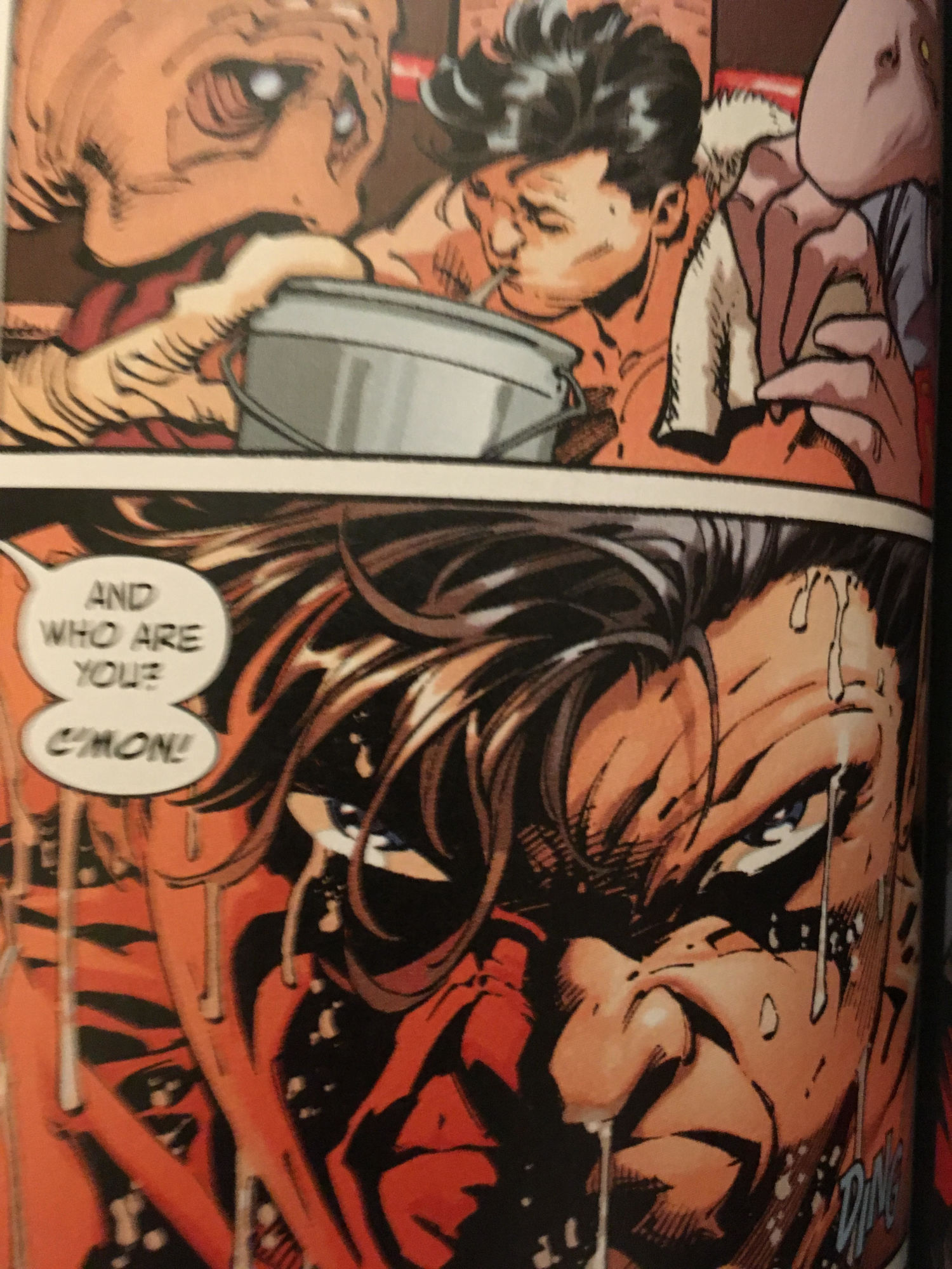 Andy Kubert's art shines yet again this month. Given a shorter page count, he works with King well to convey a sense of time passing and the wearying blows endured by Superman and his opponent. The steely determination of Clark rising up to start a new round or pick himself off the ground is well conveyed. Here is a "Man of Steel" defined more by his determination and integrity than any powers or invulnerability.